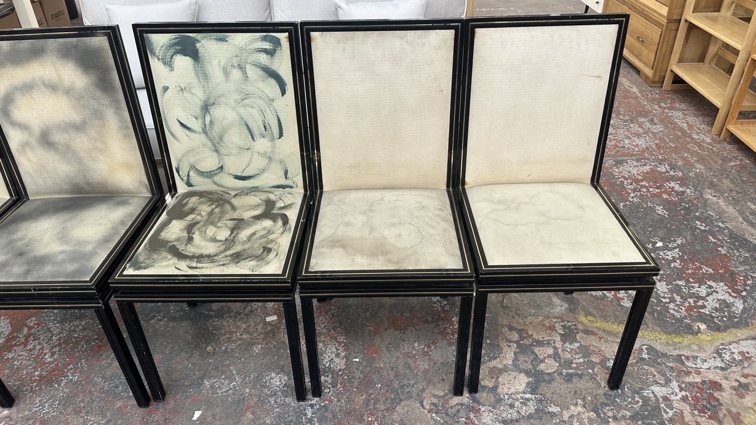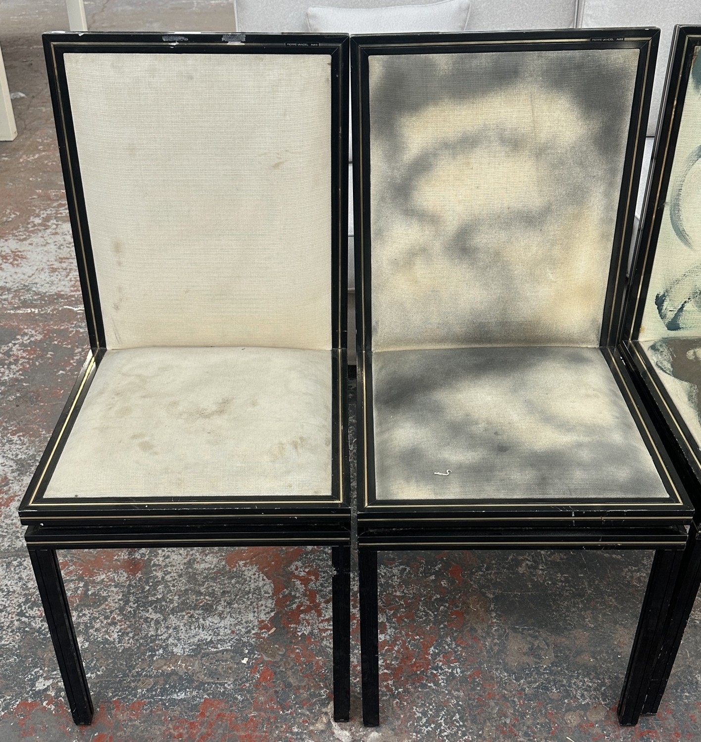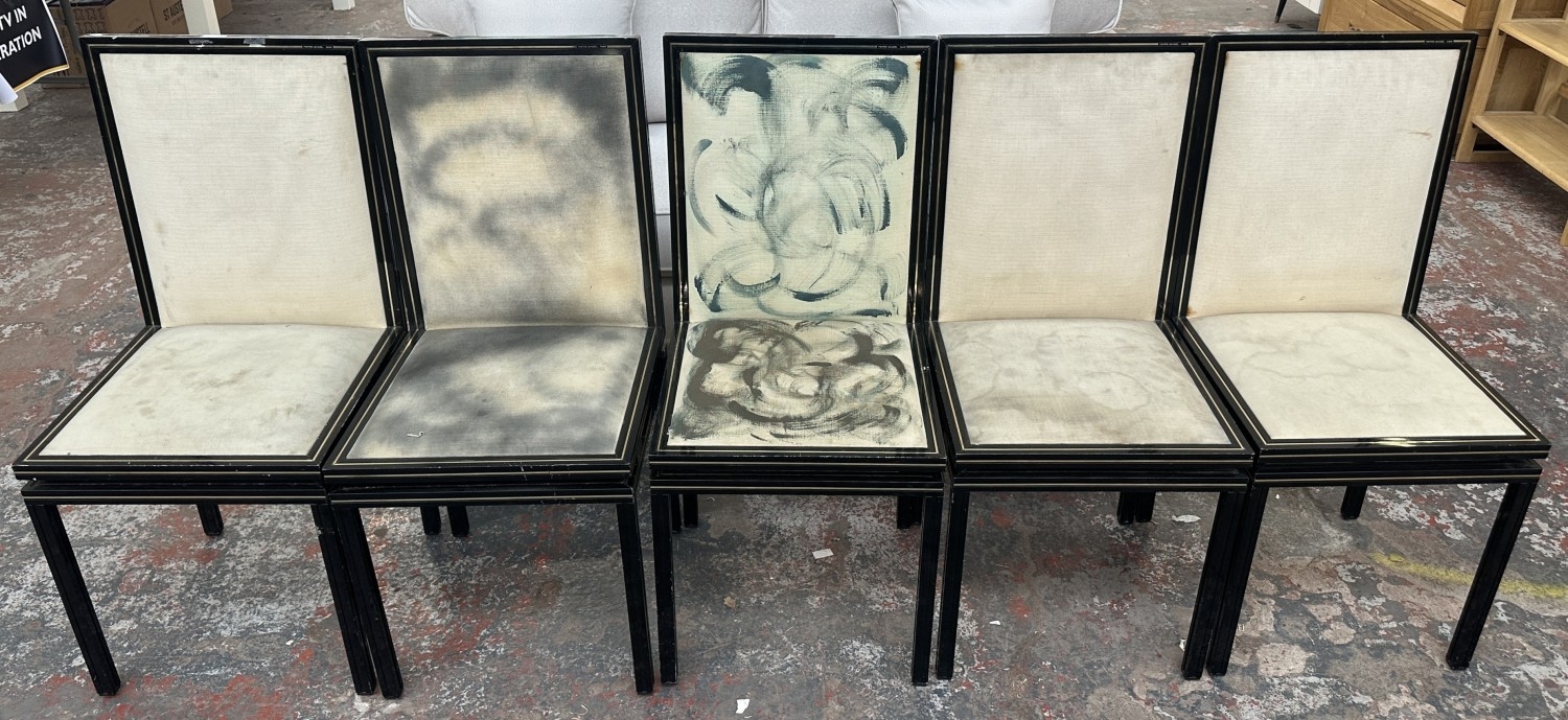Five 1970s Pierre Vandel of Paris black lacquered aluminium and fabric upholstered dining chairs