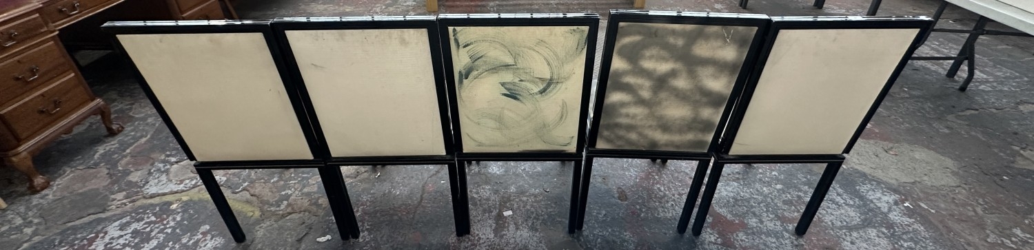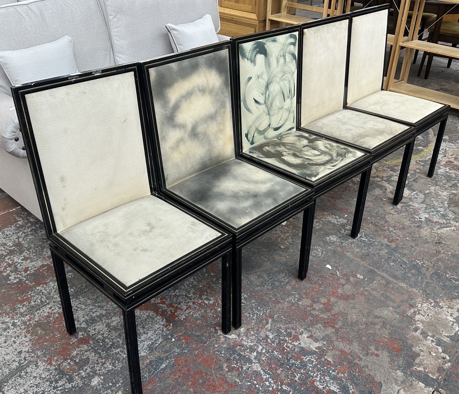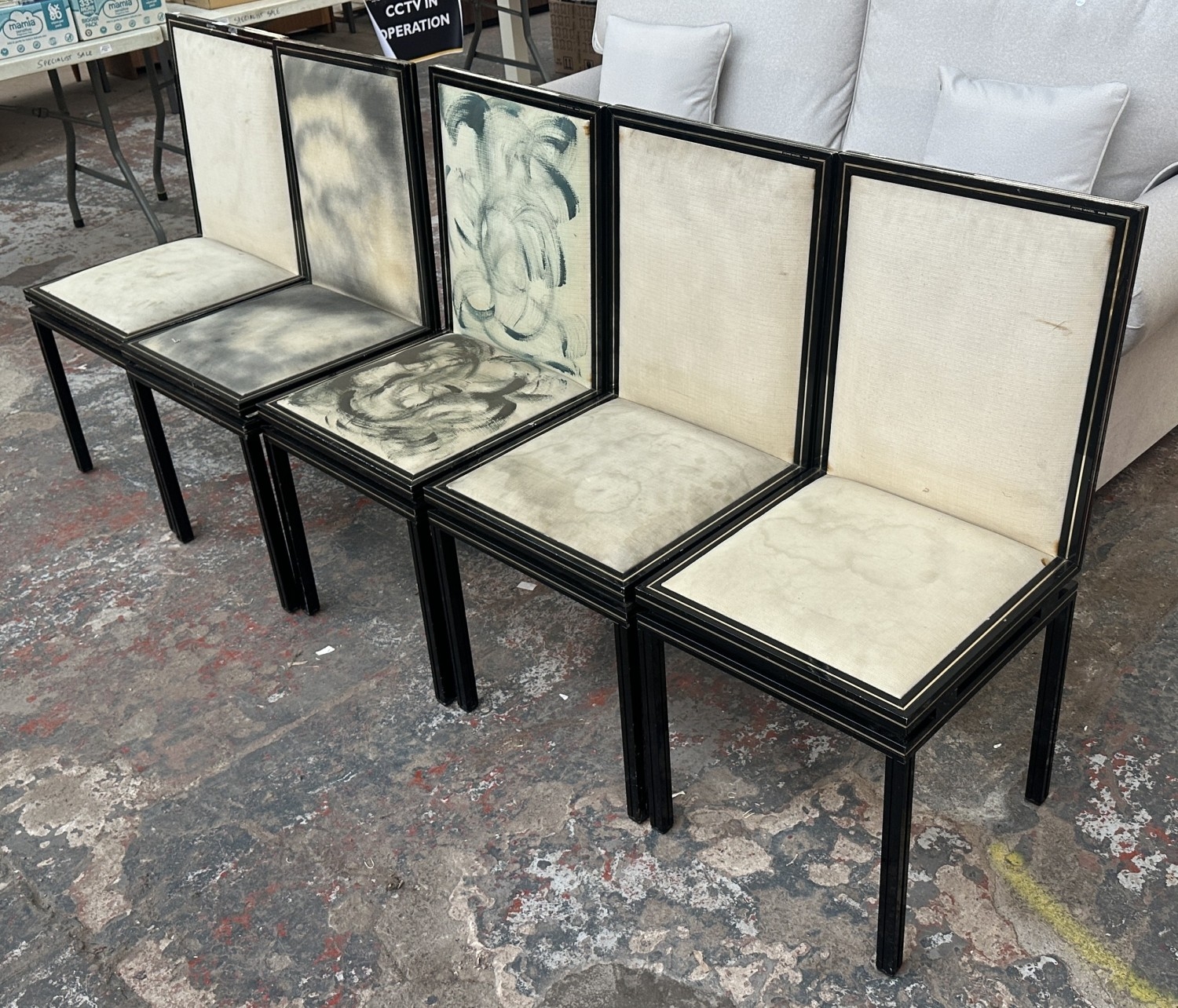 Five 1970s Pierre Vandel of Paris black lacquered aluminium and fabric upholstered dining chairs
