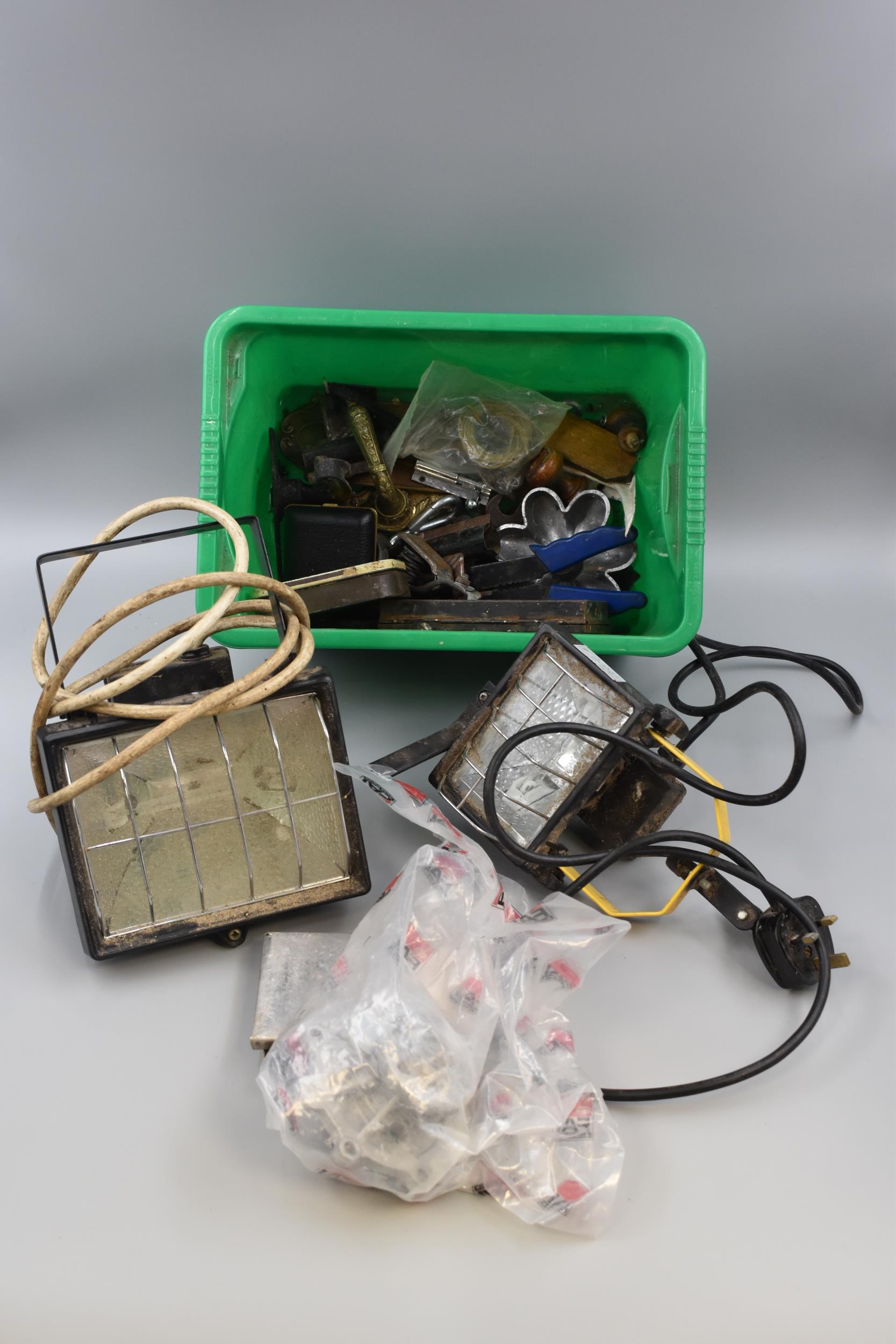 Mixed lot to include 2 security lights (untested), various tools handles & metal items