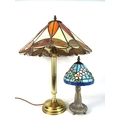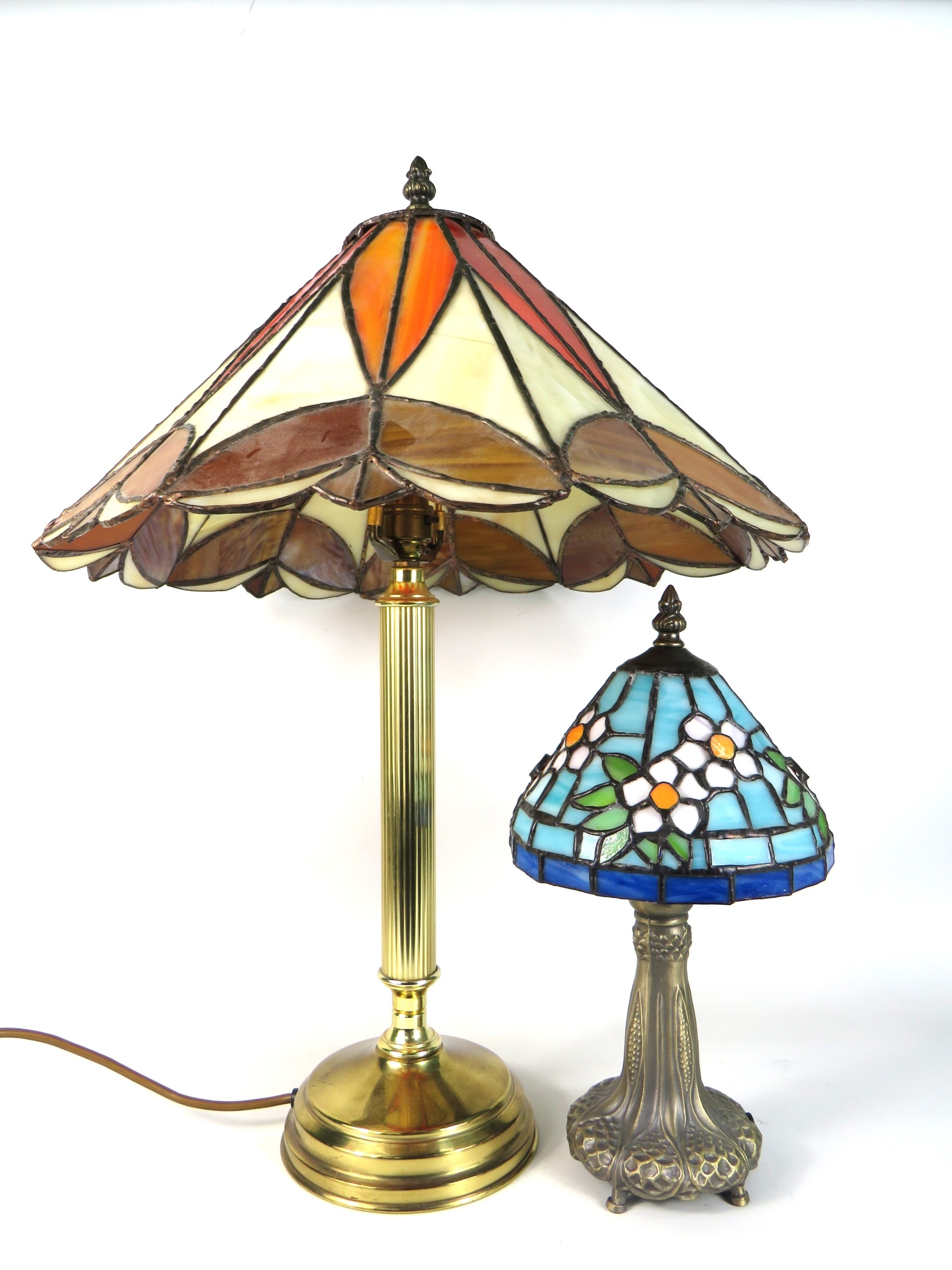 Two Tiffany-style stained glass table lamps (1 without wire) - tallest 61cm