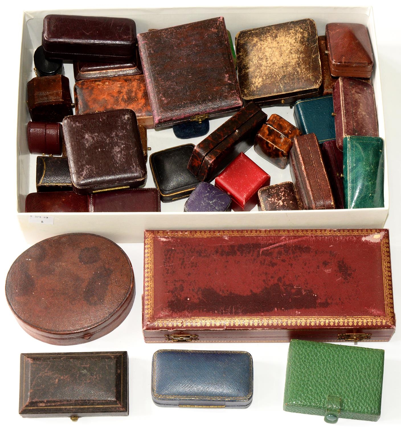 A COLLECTION OF 19TH C AND LATER LEATHER AND OTHER JEWELL BOXES (35)