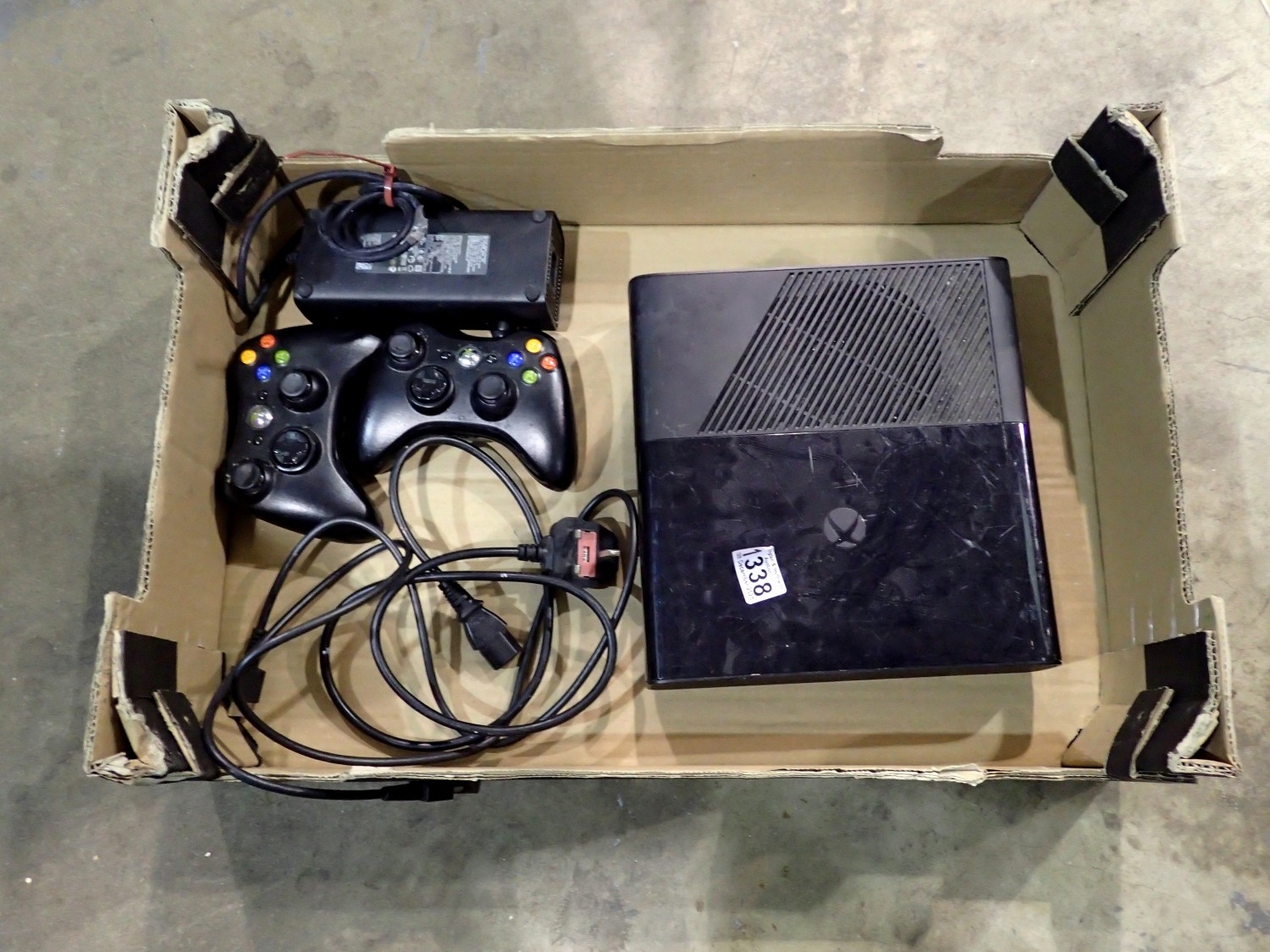 Xbox 360 console with two controllers. Not available for in-house P&P