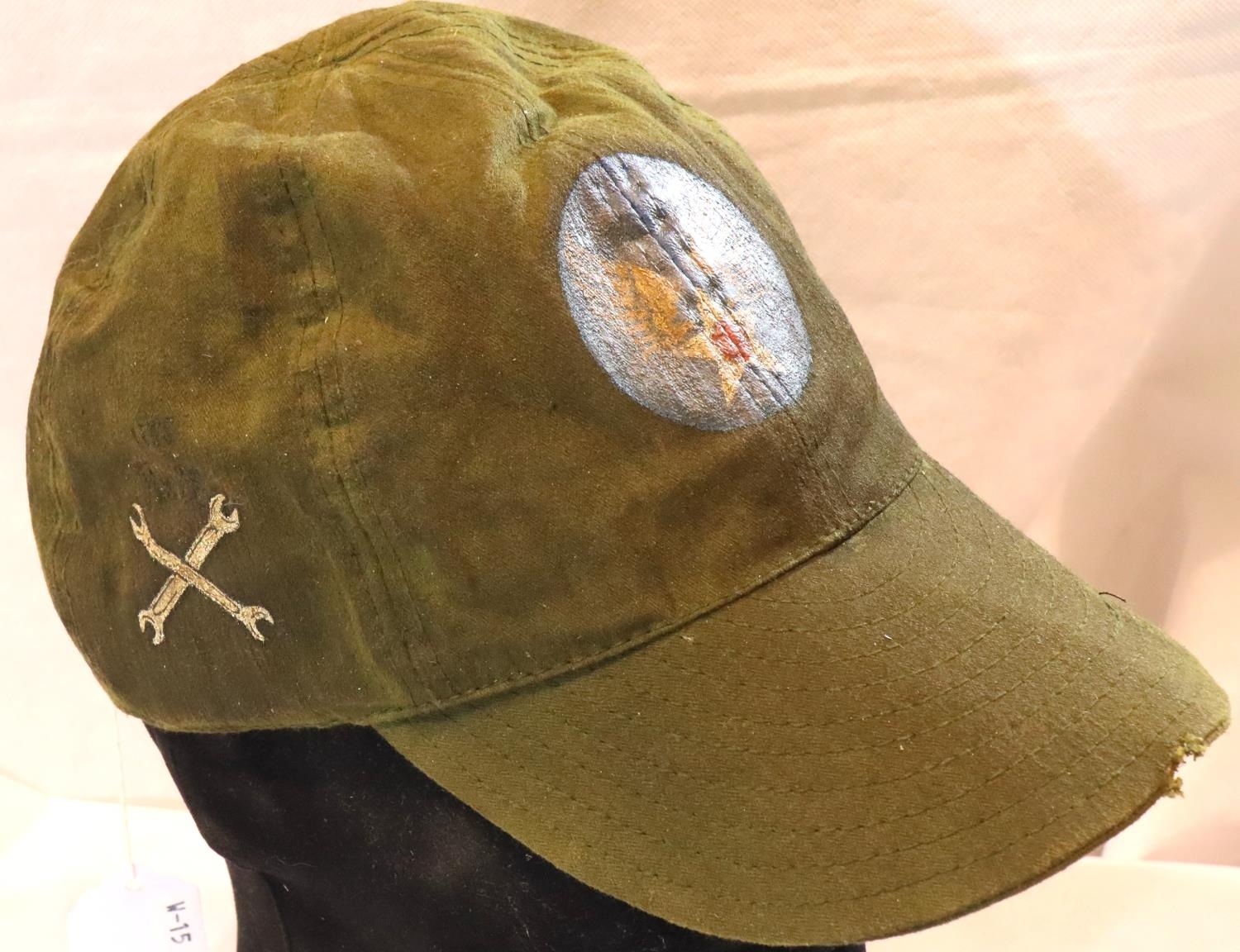 WWII US Army Air Force mechanics cap with hand painted decals. P&P Group 1 (£14+VAT for the first lot and £1+VAT for subsequent lots)