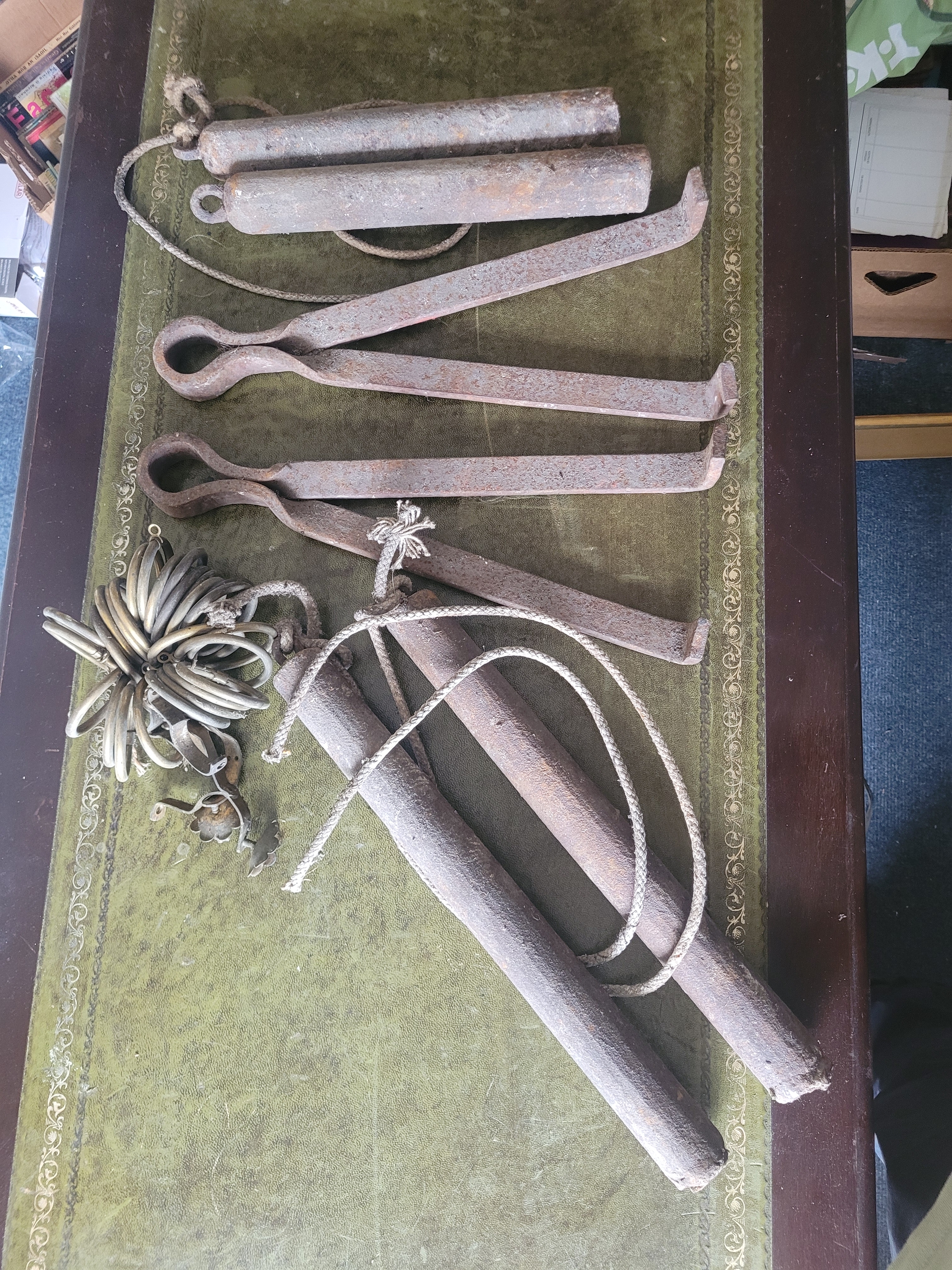 collection if sash window weights, wall gate hangers and curtain hooks