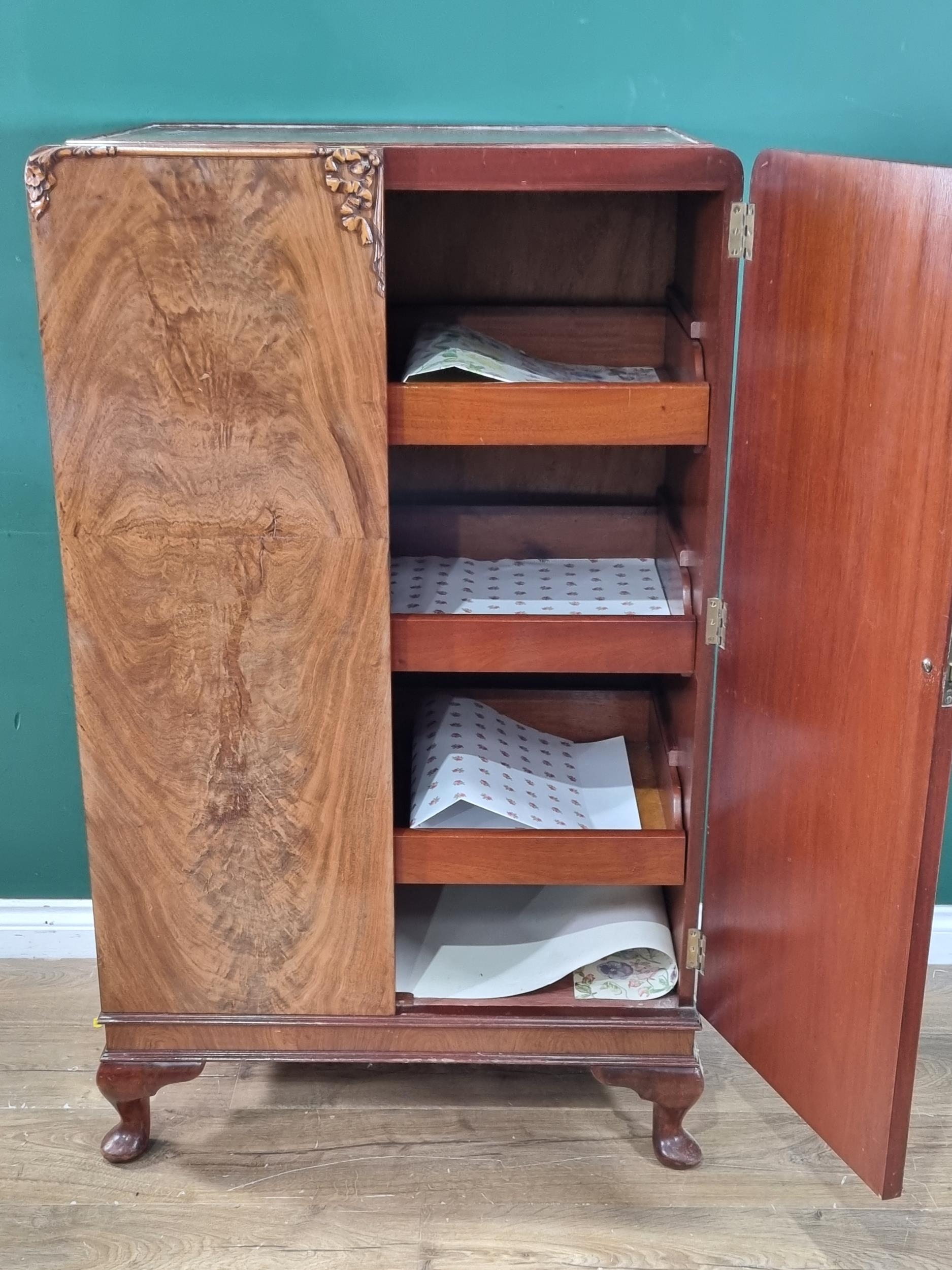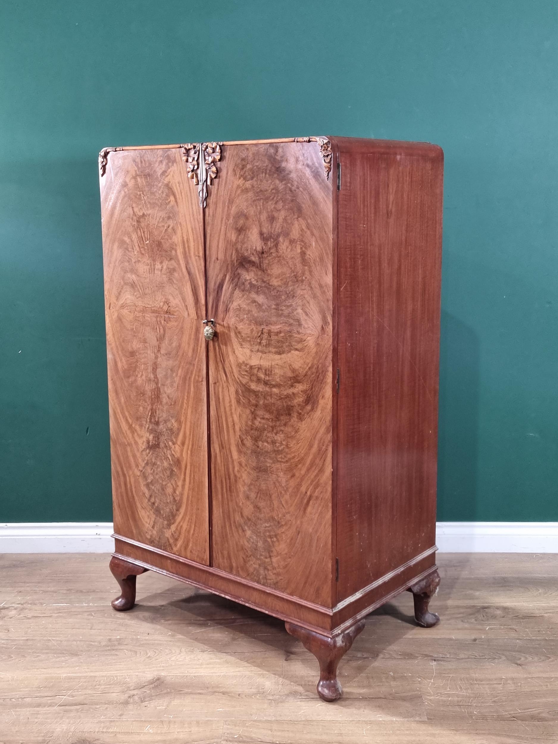 A vintage walnut bedroom suite comprising of a mirror back dressing table, two door wardrobe and a bedside cabinet, (R1).