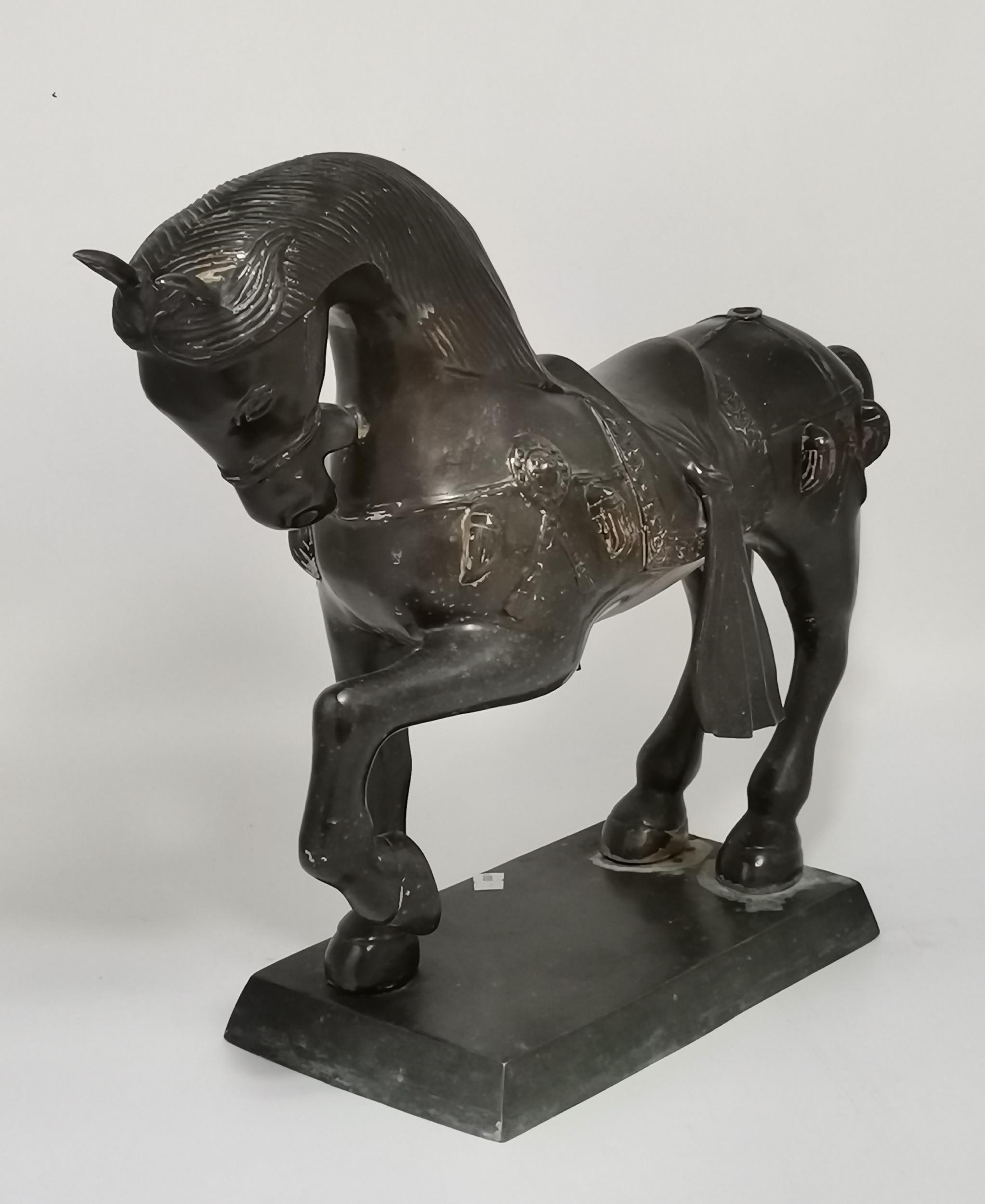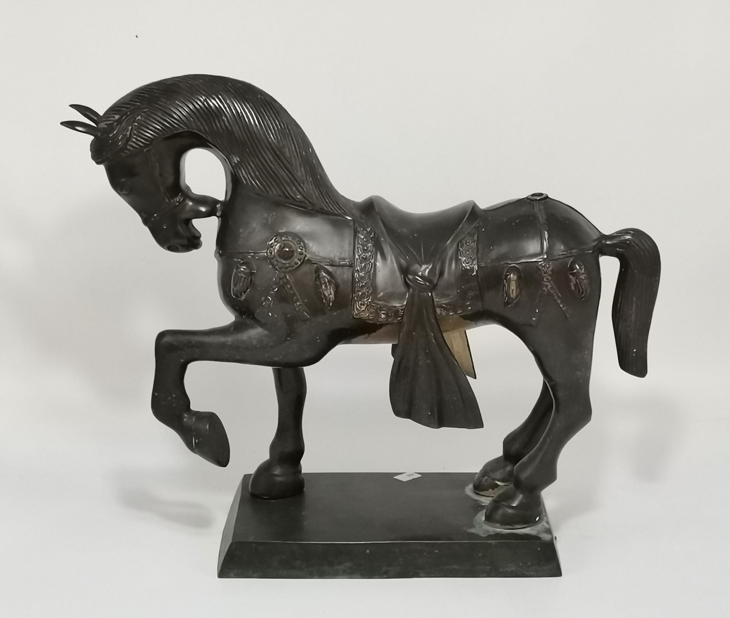 A Chinese Fengshui horse statue possibly copper inspired by Tang Dynasty war horse 45cm x 40cm