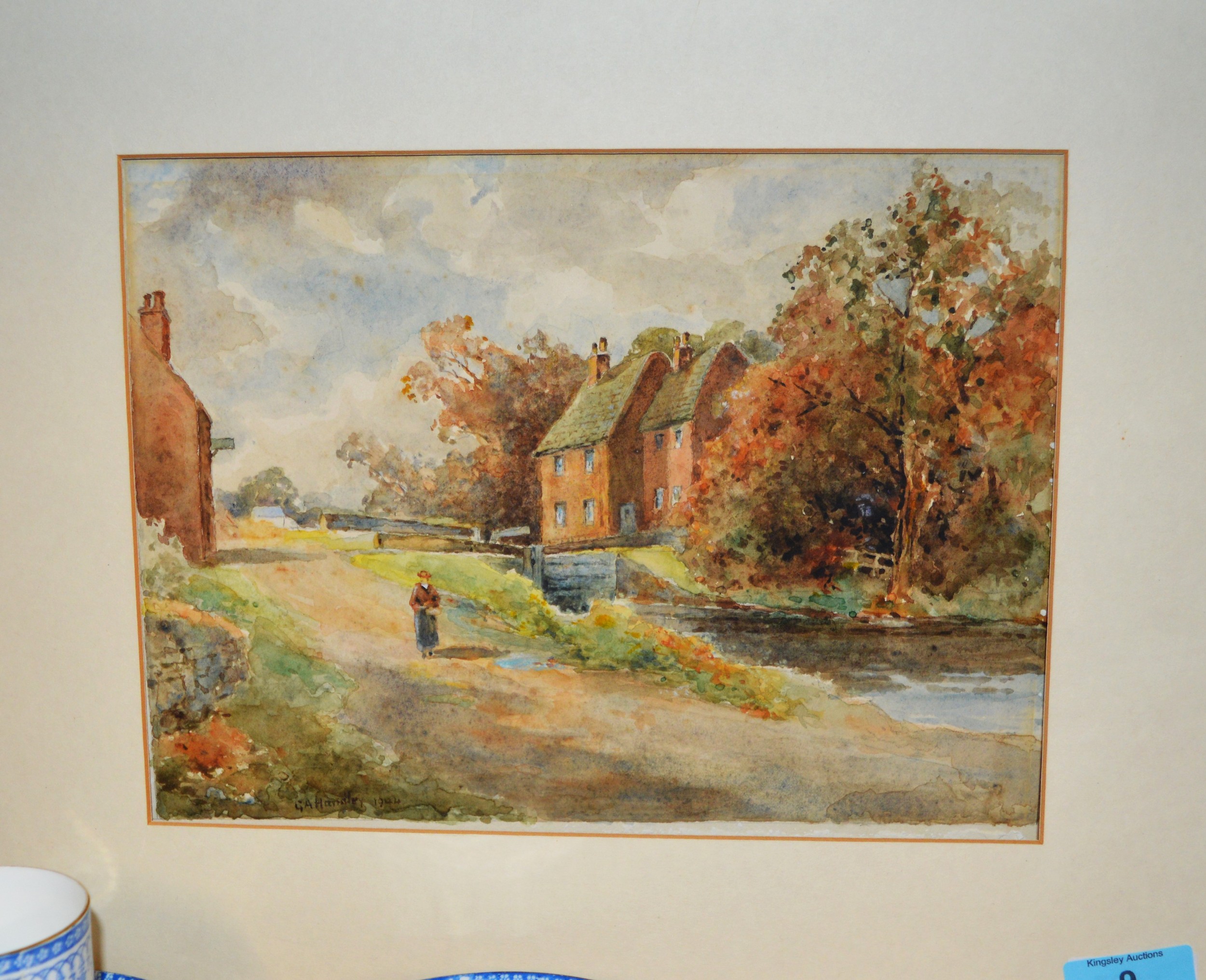 Unframed (in Mount) Watercolour by G. A. Handley 1944 of a Rural Scene