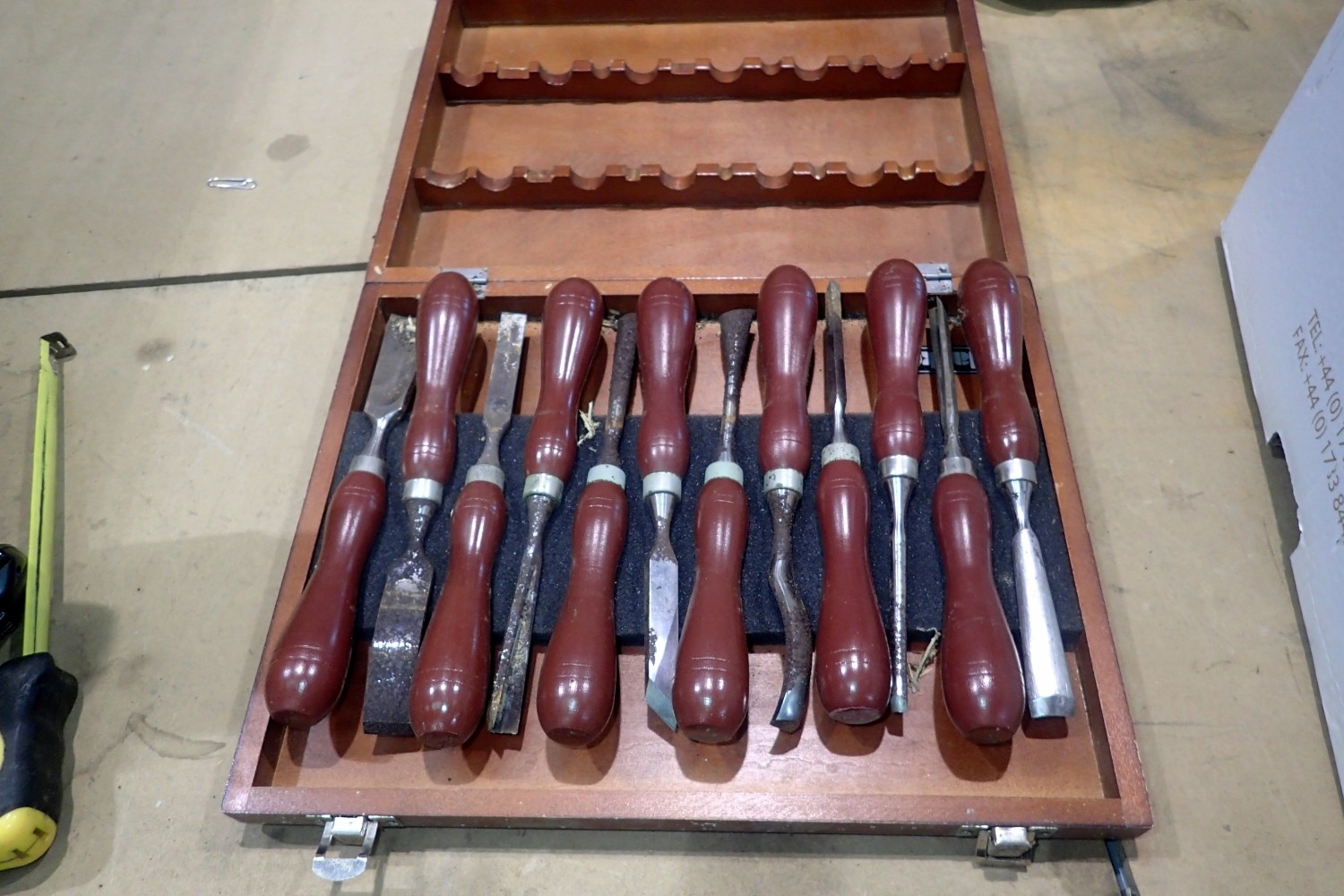 Twelve piece Clarke carving chisel set. Not available for in-house P&P