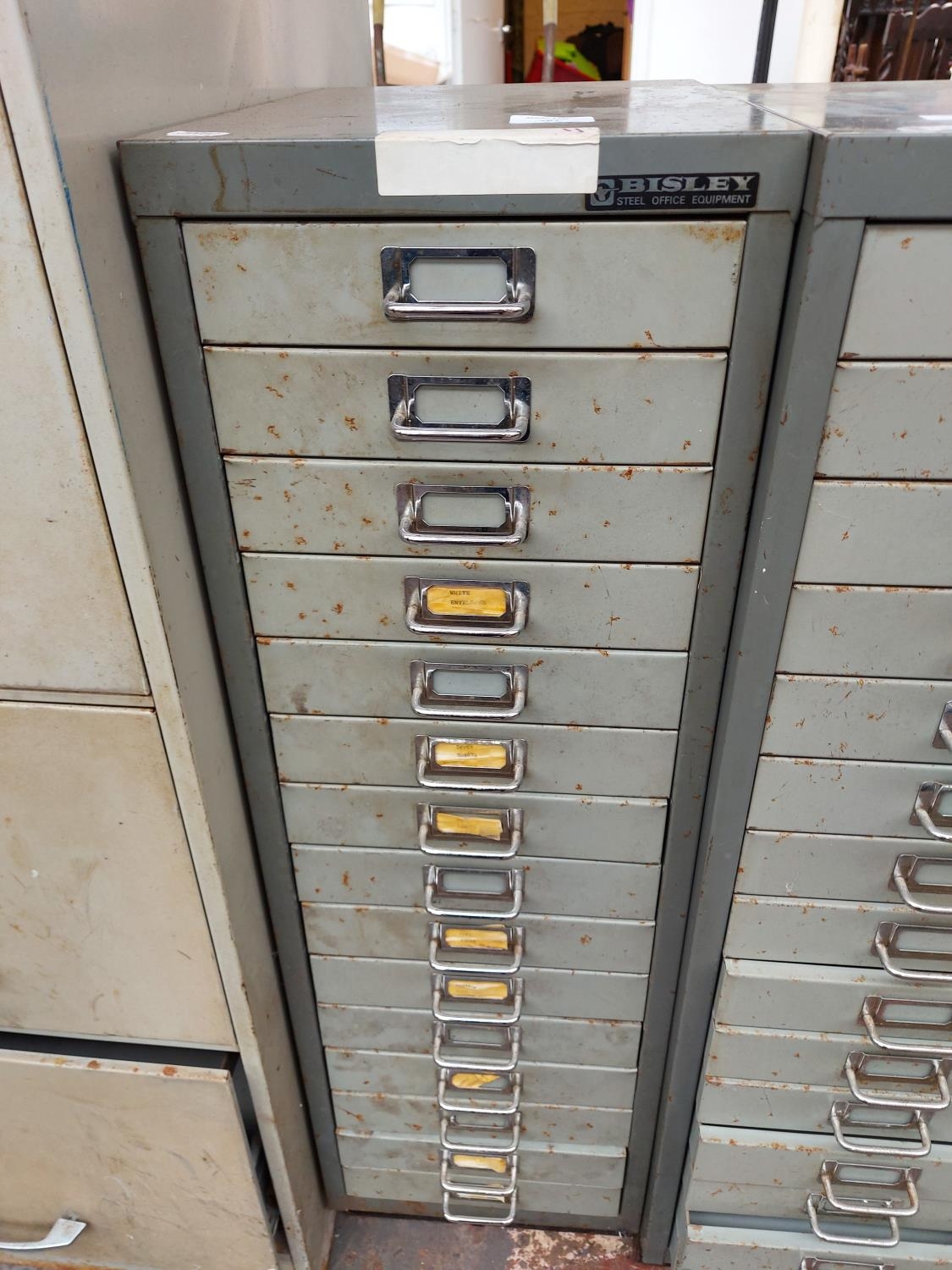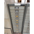 A two tone grey Bisley 15 drawer metal office filing cabinet