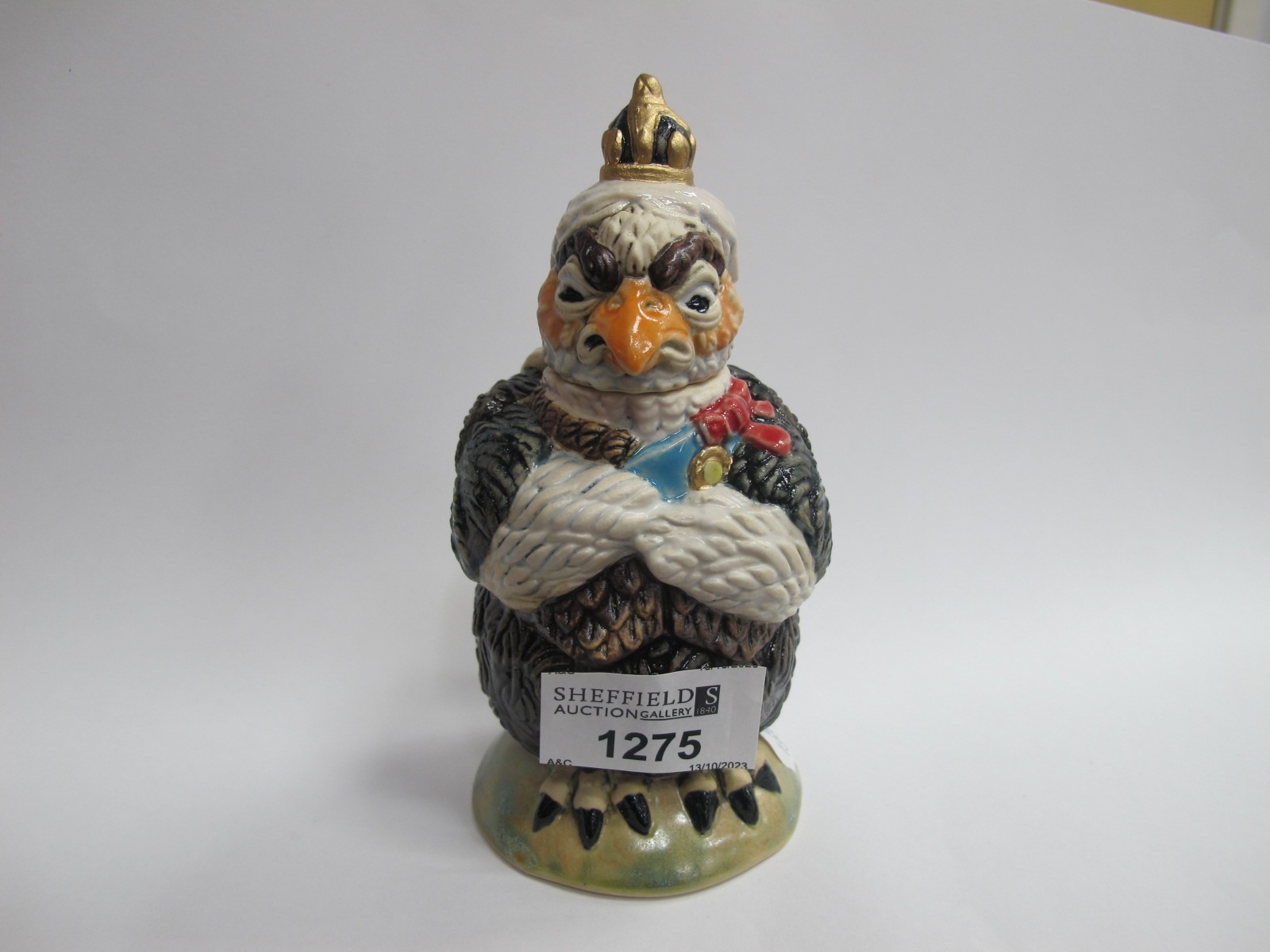 Burslem Pottery 'Queen Victoria' Grotesque Bird Figure, stamped Andrew Hull, inspired by the Martin Brothers, 13.5cm high.