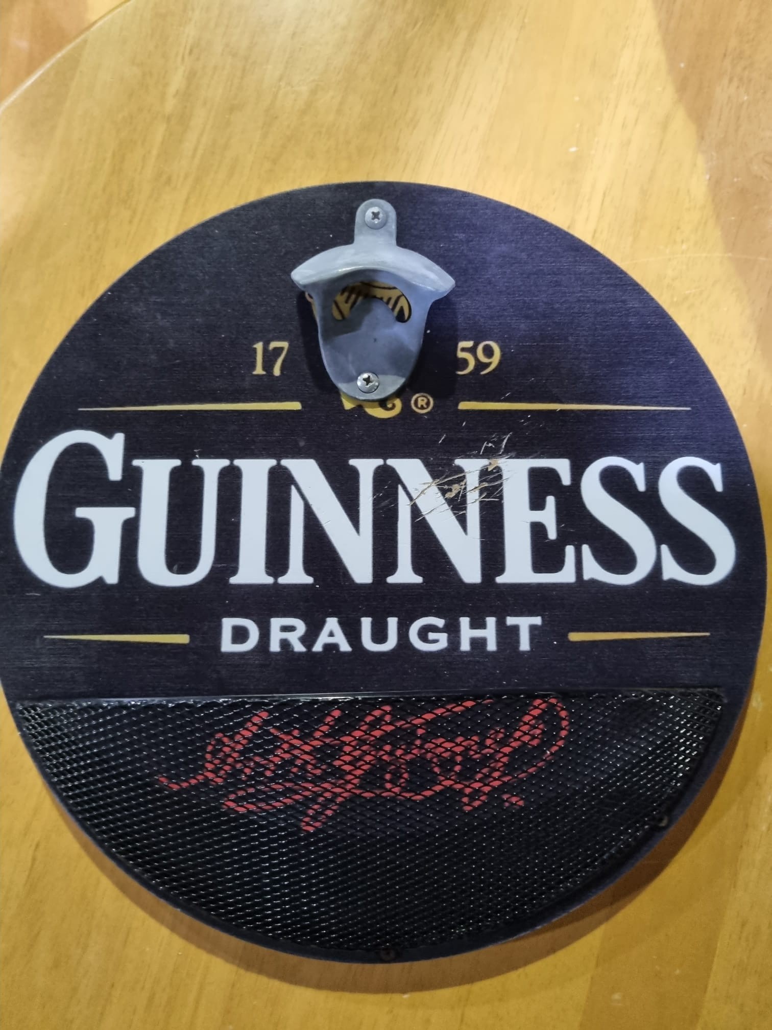 Wooden Guinness Wall Mountable Bottle Opener with Basket for Catching Lids