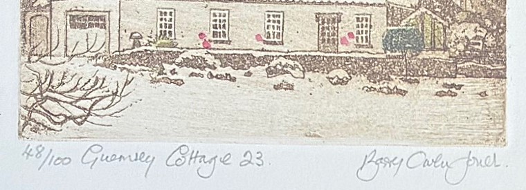 Barry Owen Jones RWS RE (British 1934-2018) Guernsey Cottage 23, coloured etching, 48/100 coloured etching, signed and inscribed in pencil, 6.5 x 12cm. * Provenance - Coach House Gallery Guernsey.