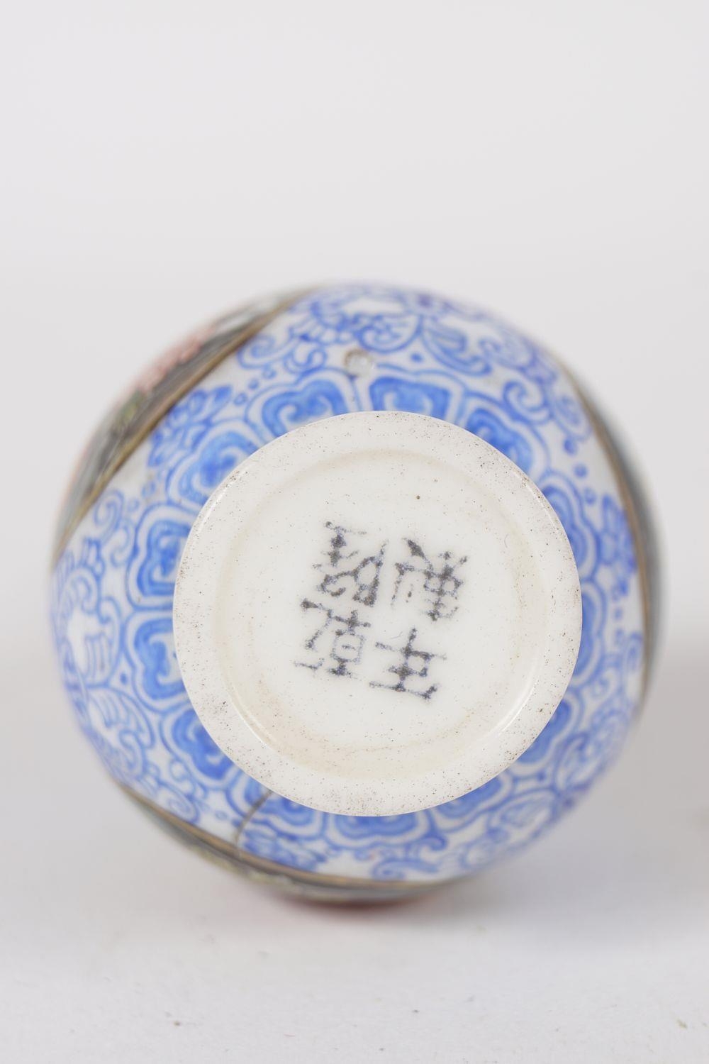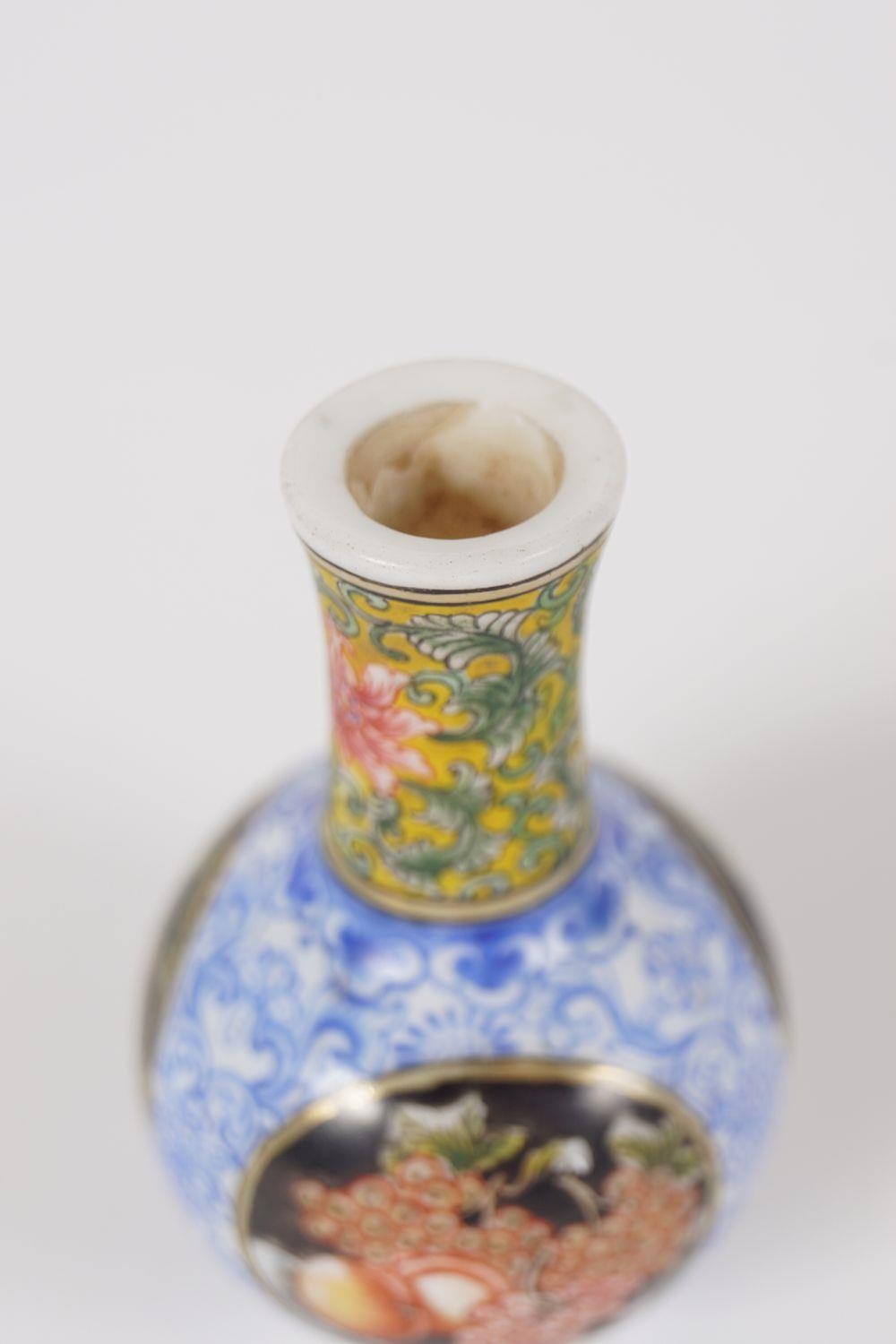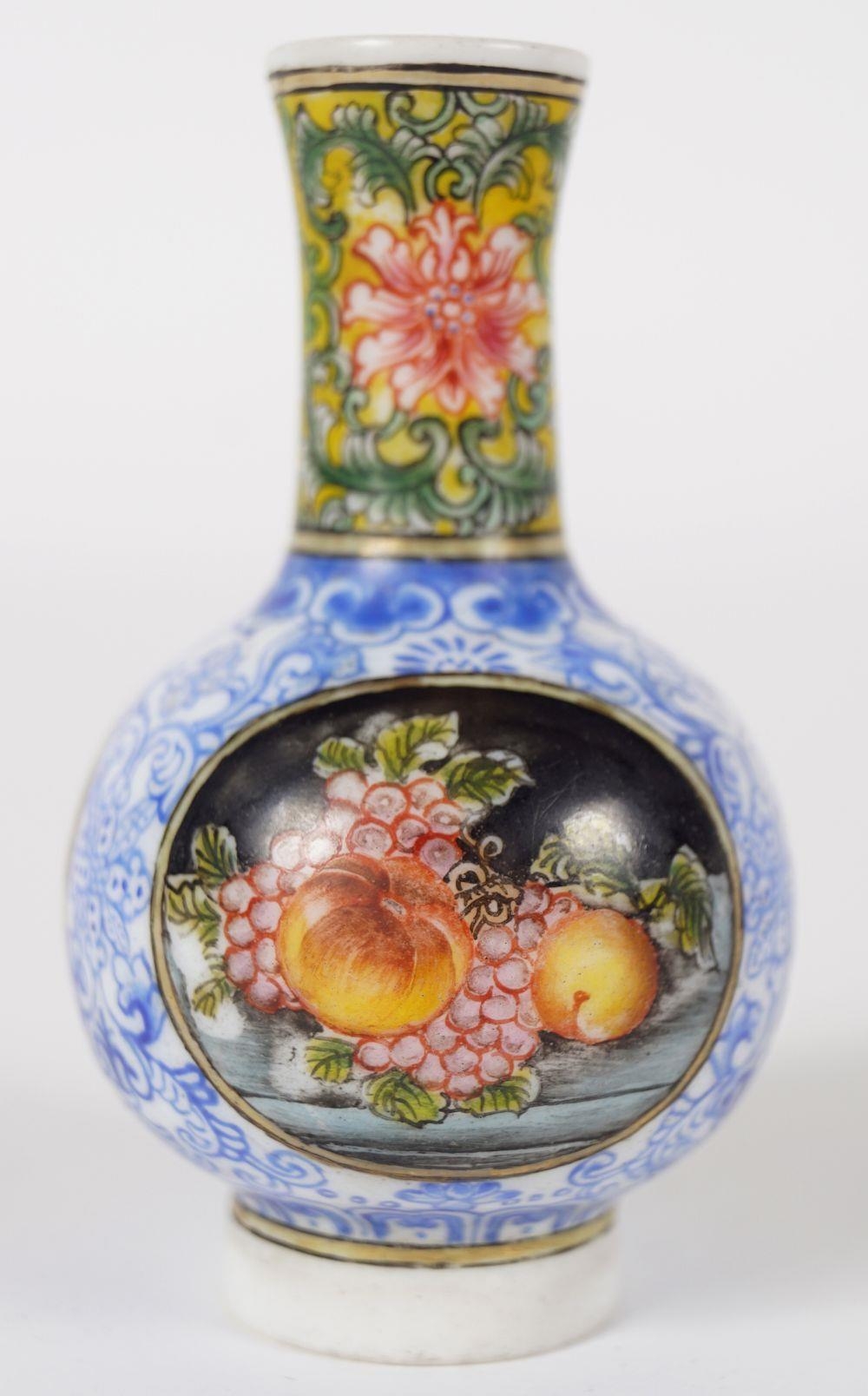 of bottle shape, decorated with oval cartouche depicting a still life of fruit, Qianlong four character mark. 7 cm. long