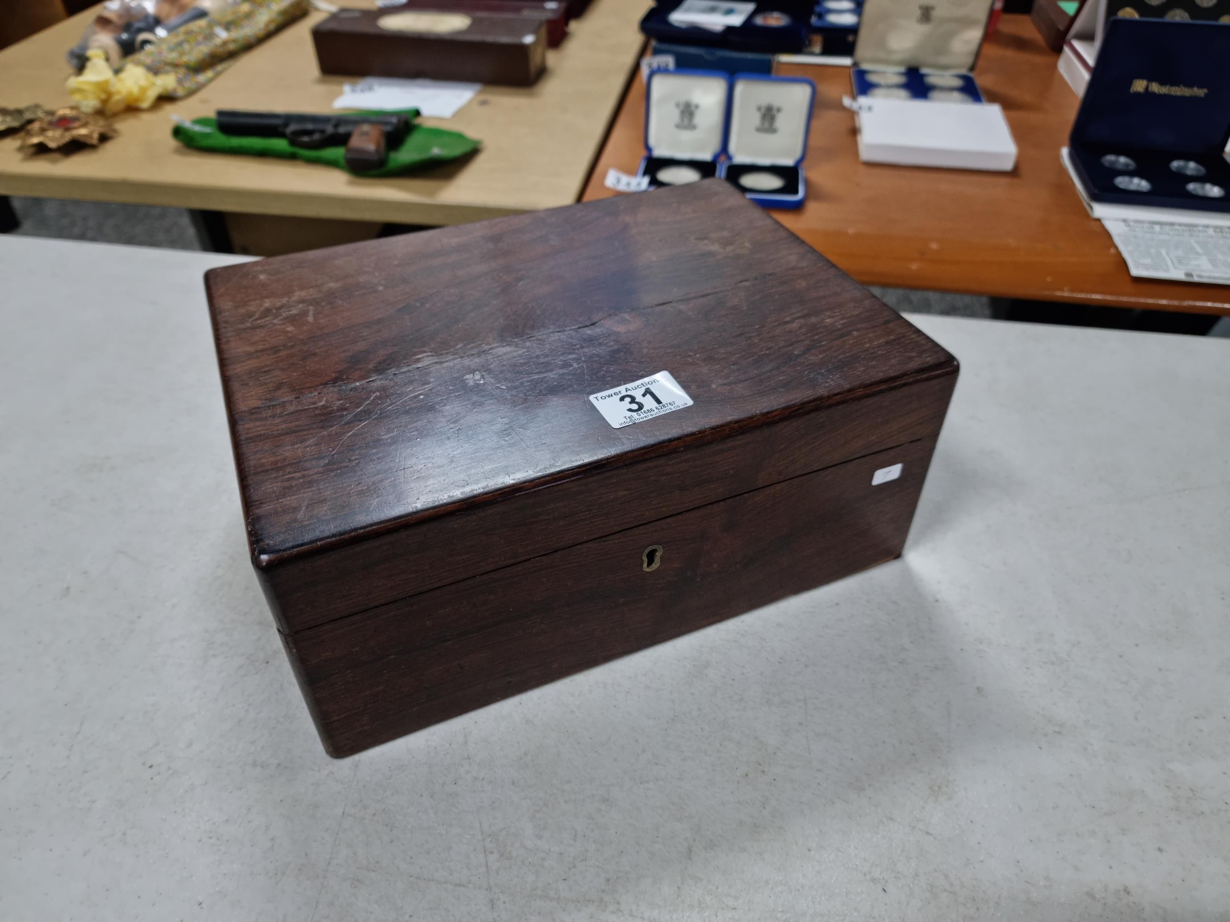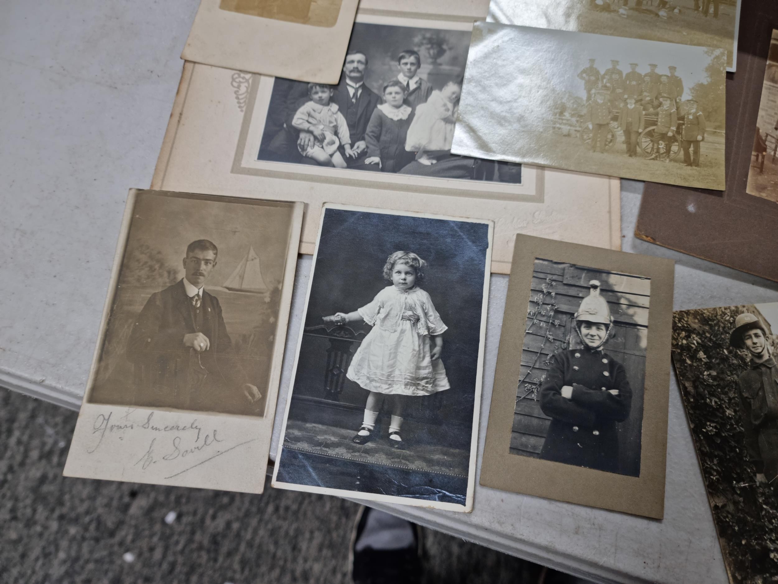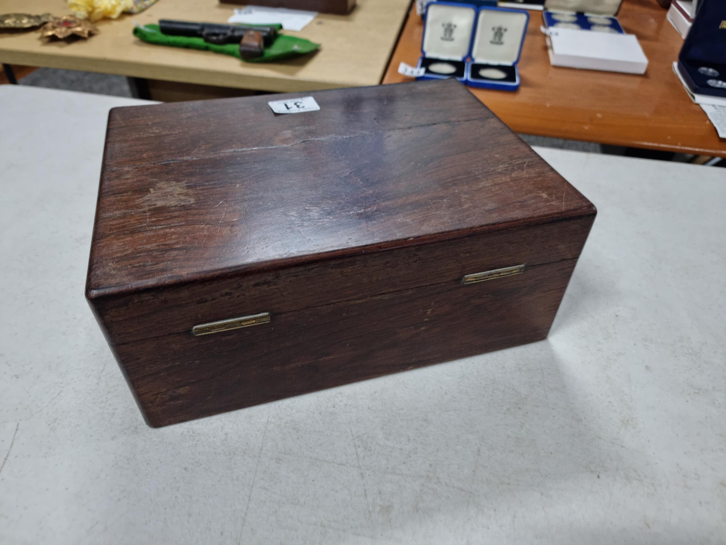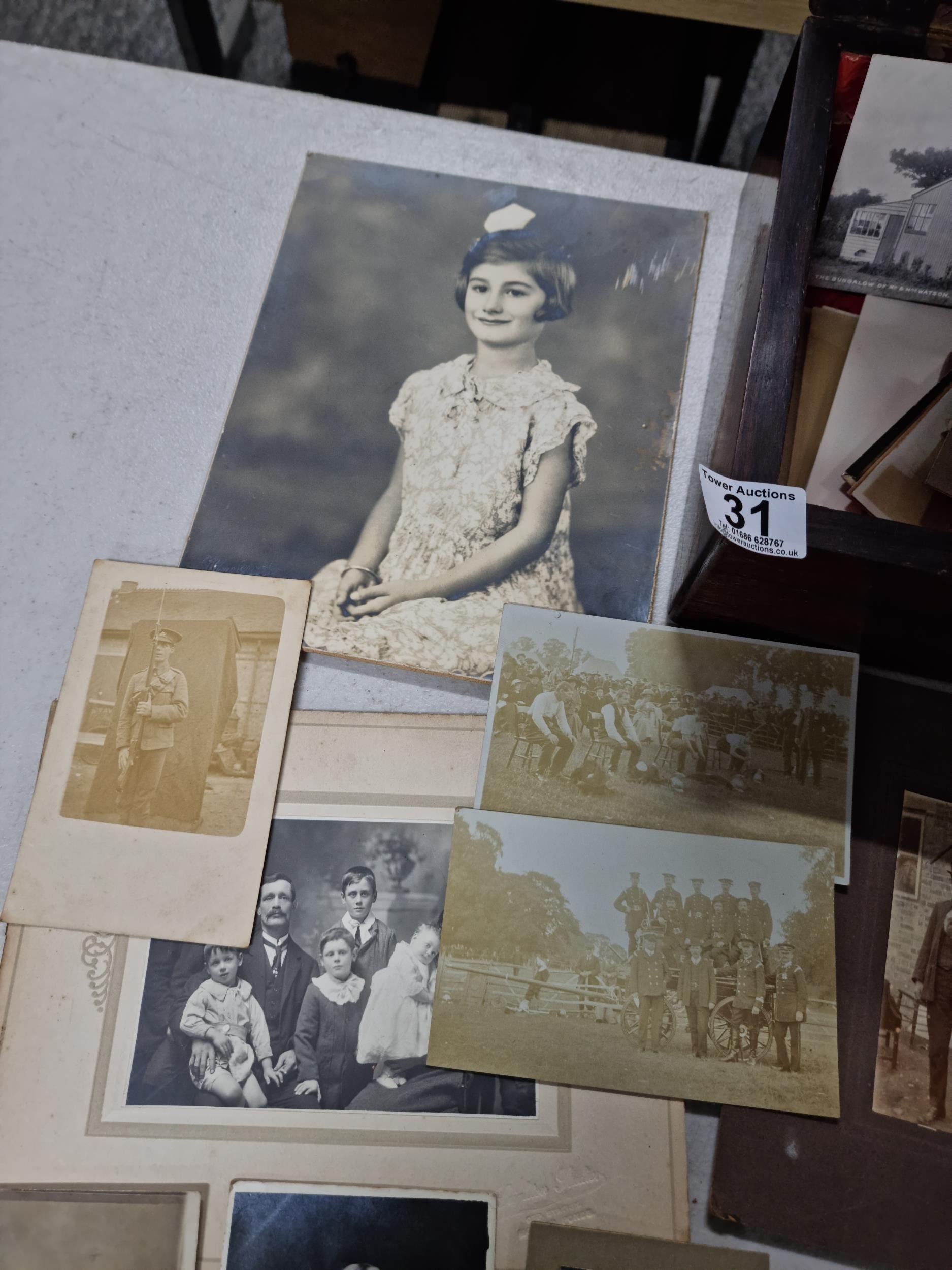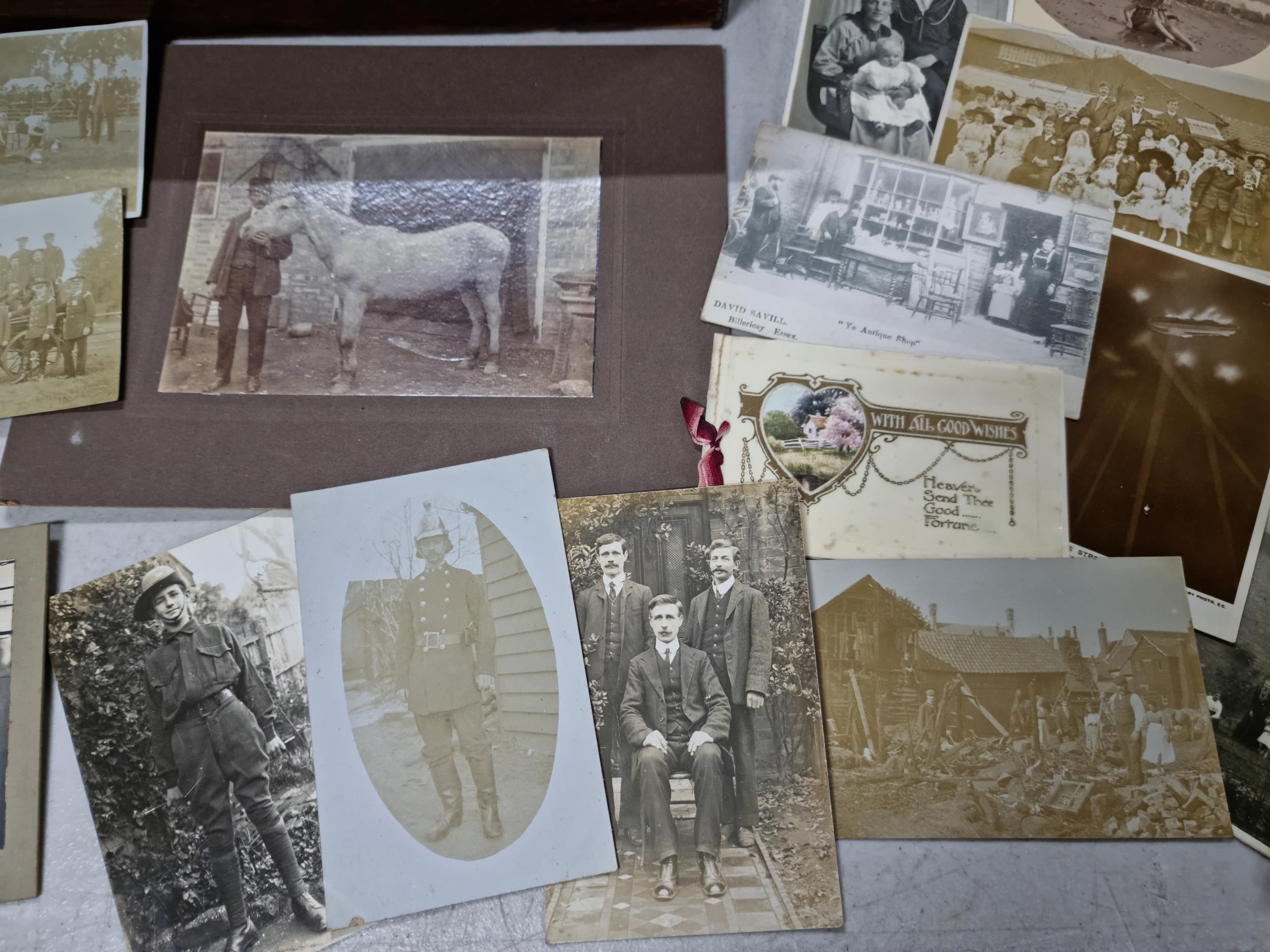 Good quality antique box containing a quantity of antique postcards and photographs inc military photos, wartime postcards, inc a The Strafer Strafed photo from 1916, please see pictures for more details, box measures 13cm high, 30cm long and 23cm deep