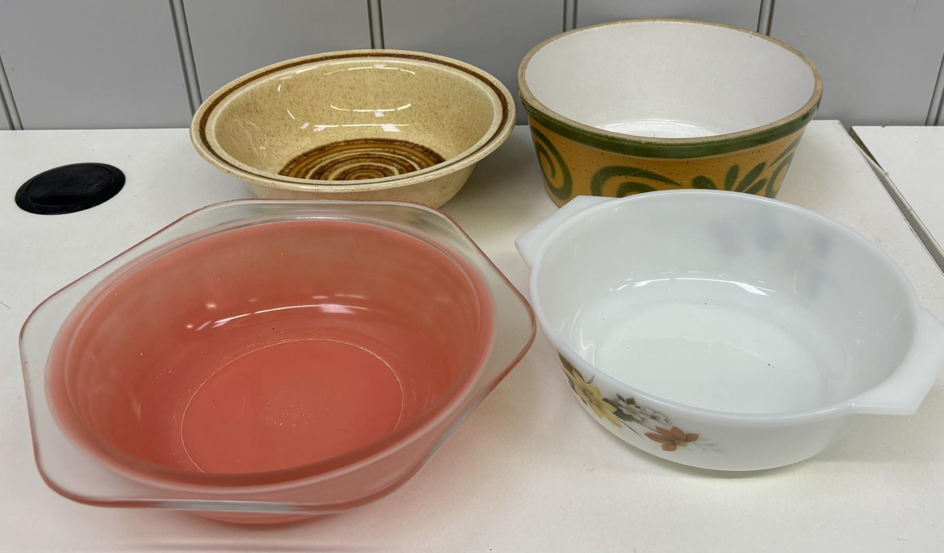 Large selection of mostly new/unused kitchenware. To include 'Poppy' dinnerware, tupperware, tablecloth, signs, etc.
