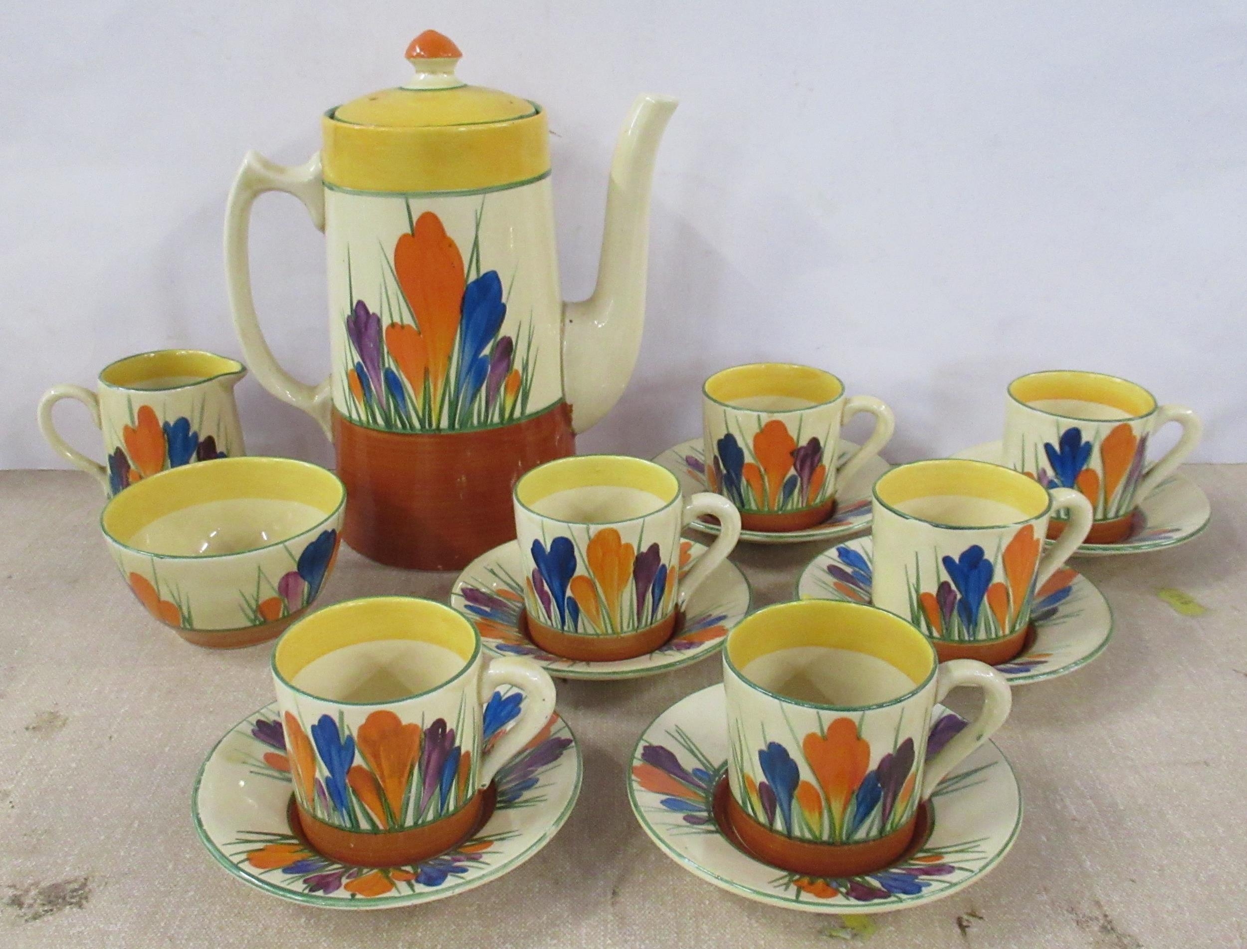 A Clarice Cliff Crocus pattern coffee set