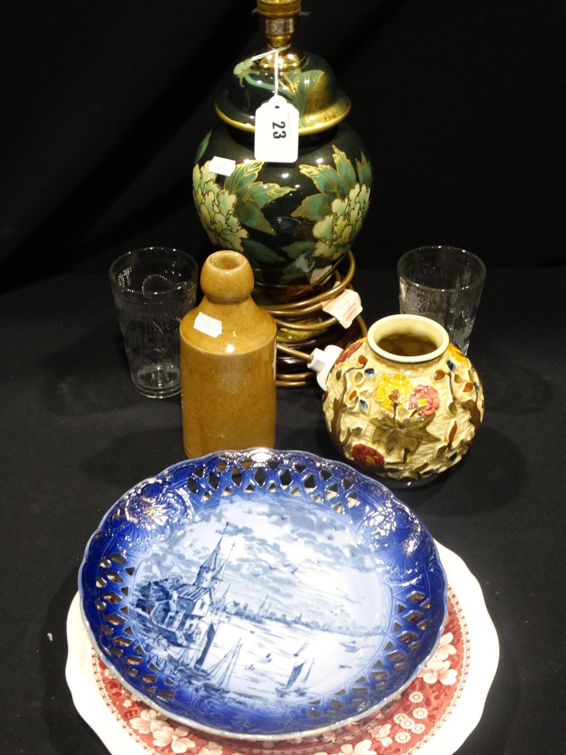 A H J Wood Indian Tree Pattern Vase Together With Further Pottery And Glass