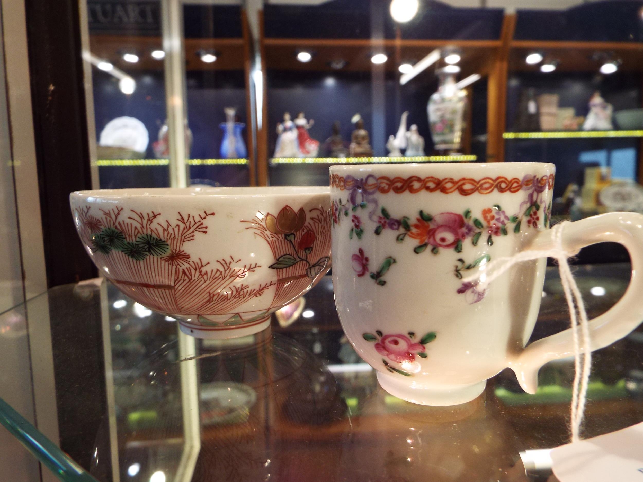 A Chinese cup painted with coloured enamel insects etc, together with an Oriental bowl