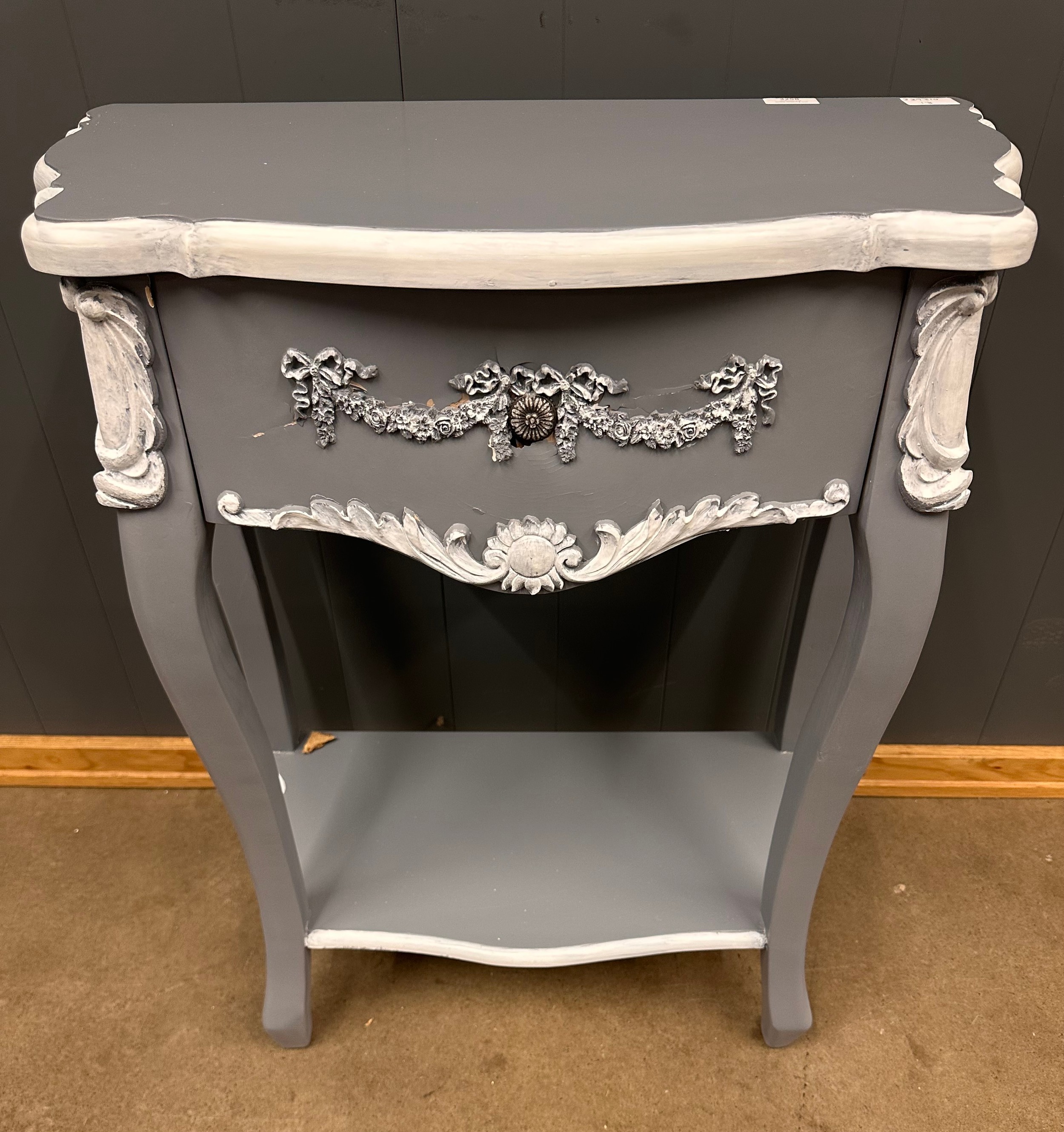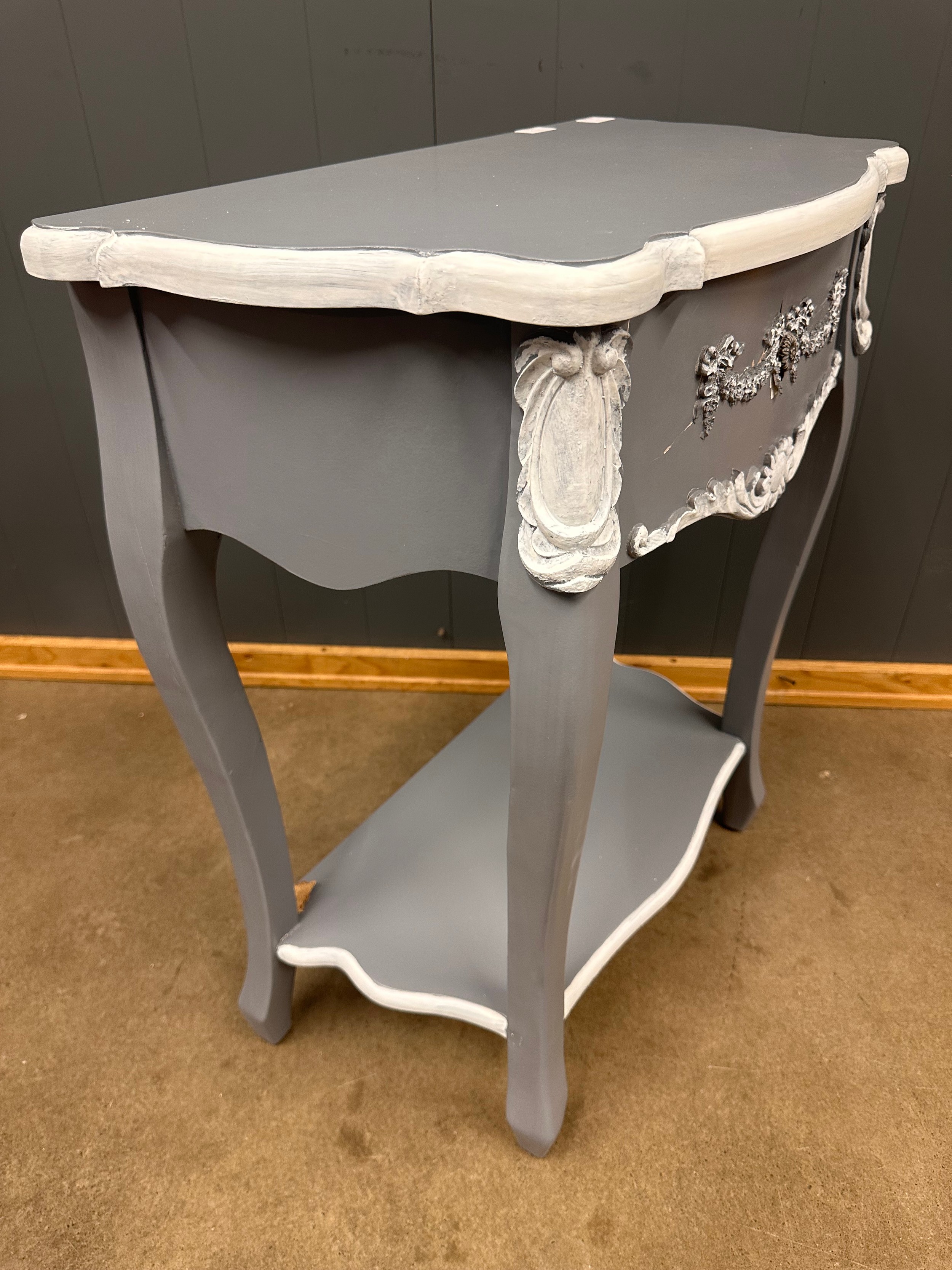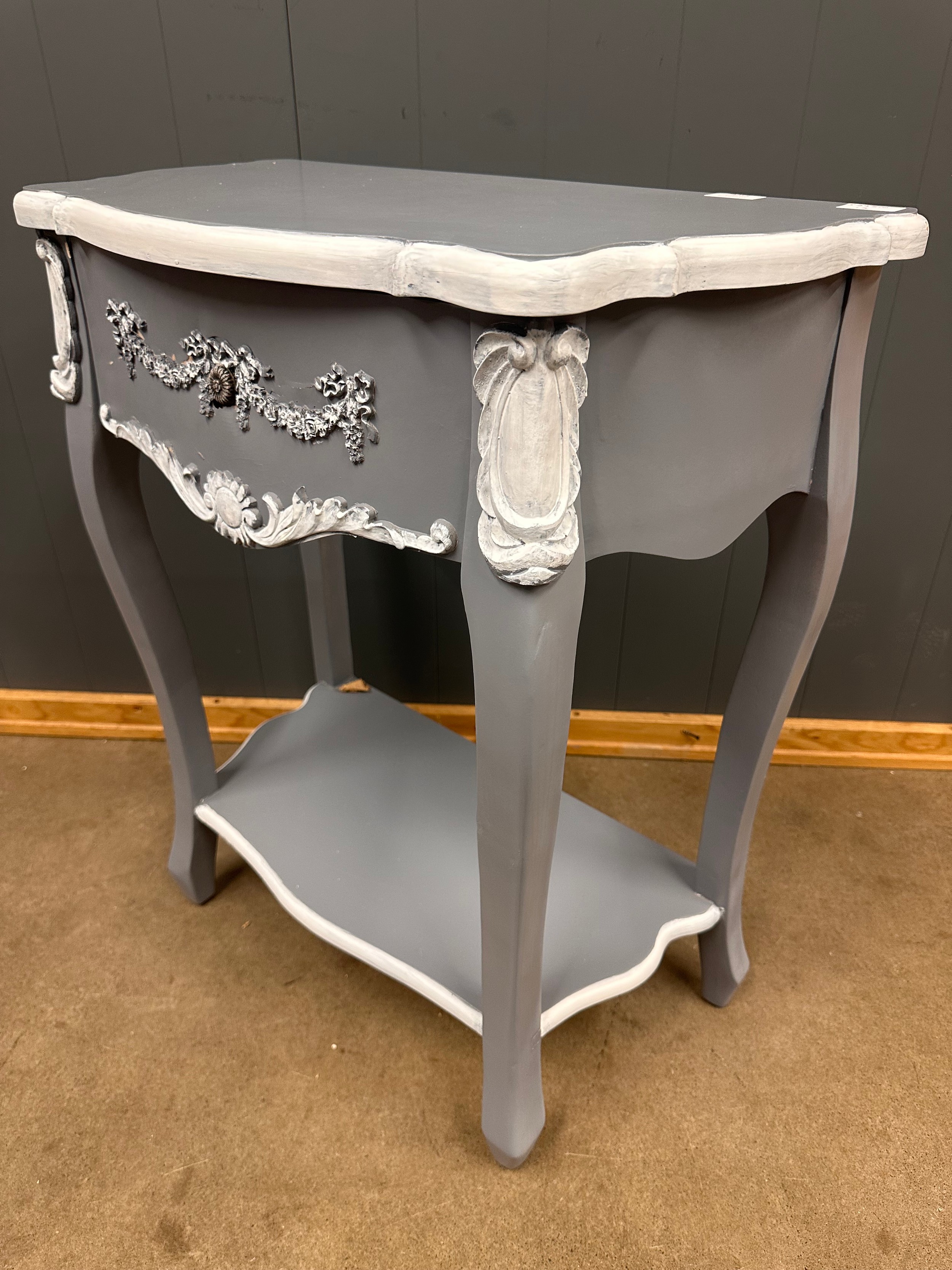 A grey and white French style 1 drawer console table