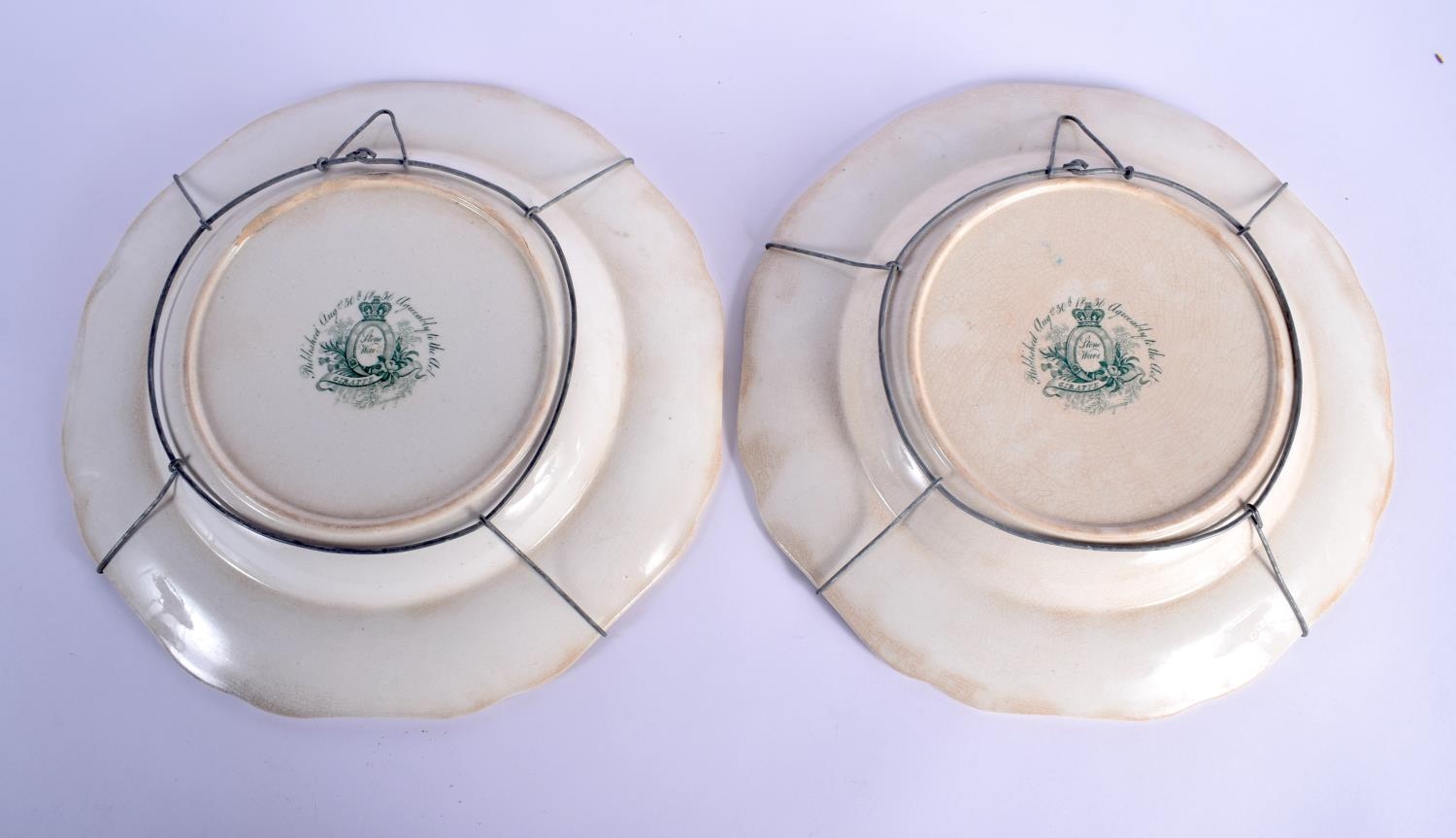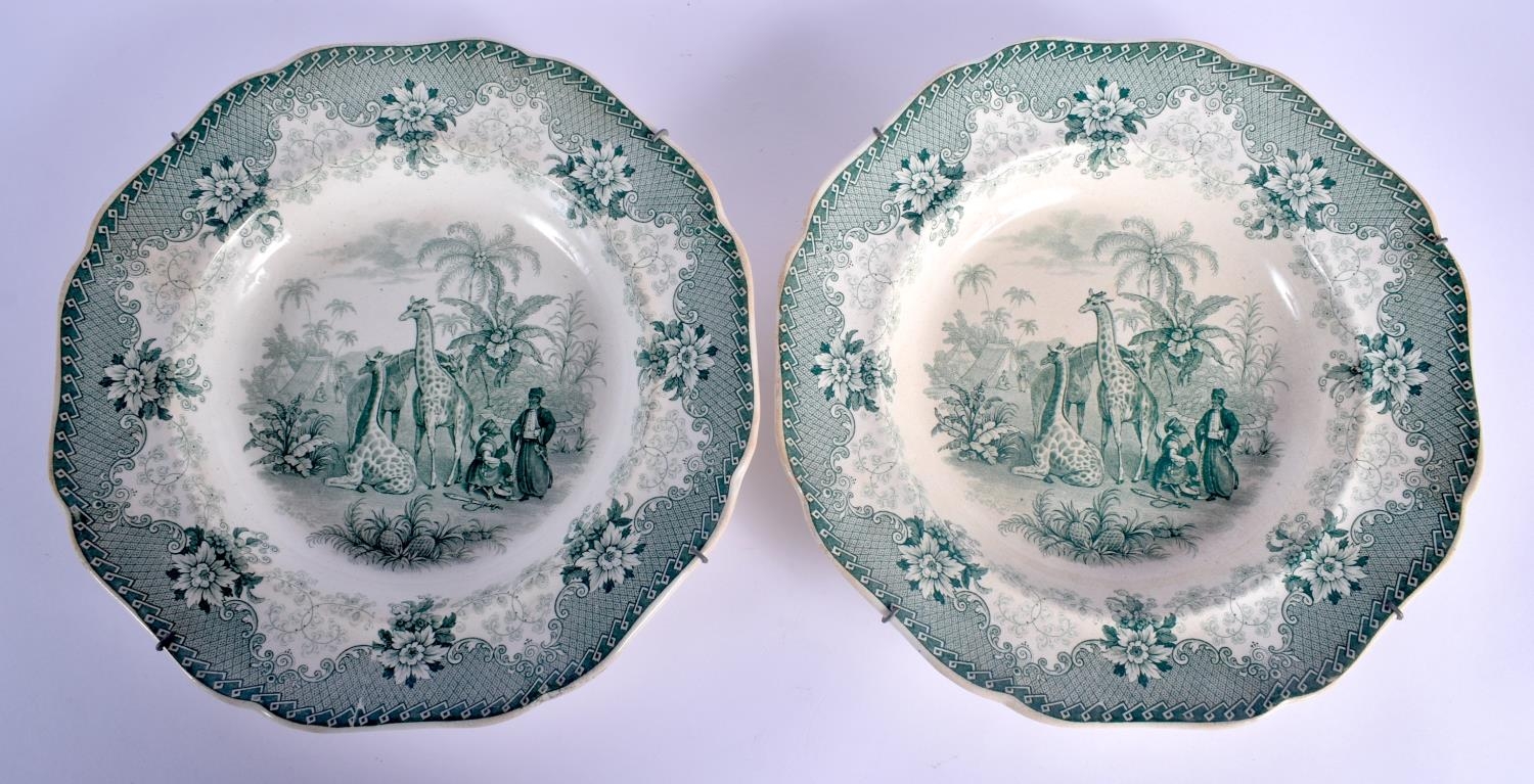 A RARE PAIR OF EARLY 19TH CENTURY JOHN RIDGWAY POTTERY STAFFORDSHIRE DEEP PLATES decorated with the giraffe pattern. 24 cm wide.