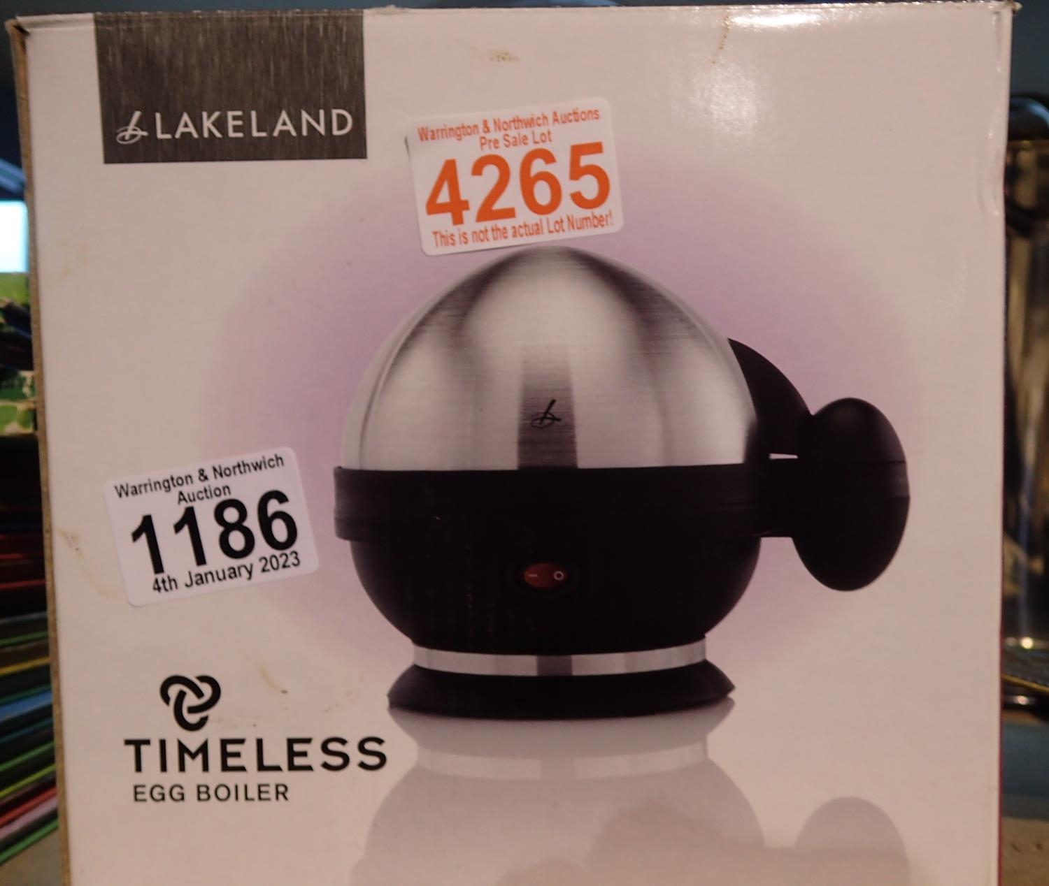 Mixed metalware and a boxed Lakeland egg boiler. Not available for in-house P&P
