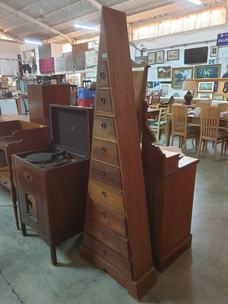 Tall Triangular Shaped Solid Wood 9-Drawer Chest of Drawers with Metal Ring Handles (Approx. H: 178cm, Base 63 x 22cm)