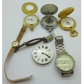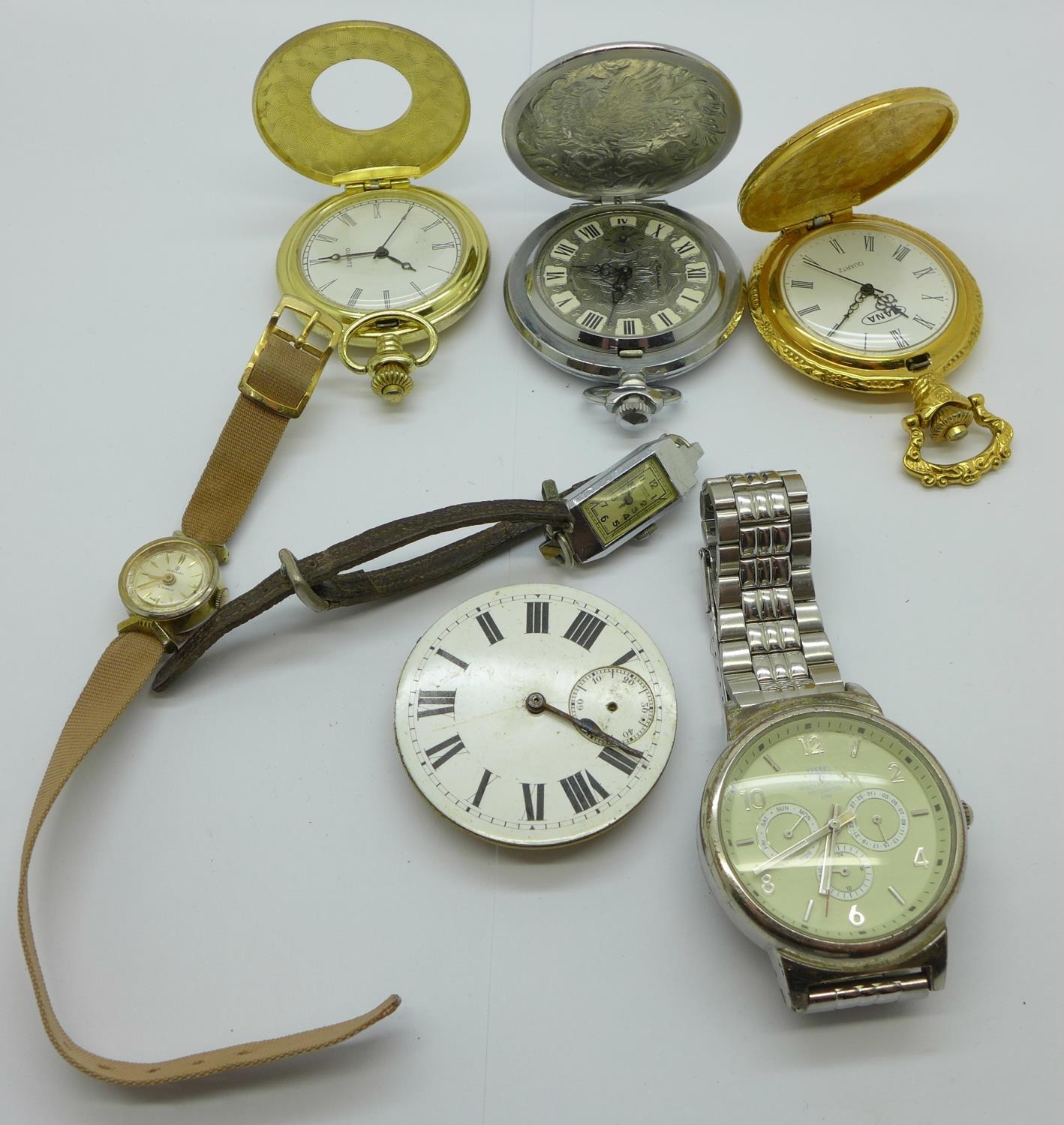 Modern quartz pocket watches, a HMO automatic wristwatch, two watches and a pocket watch movement