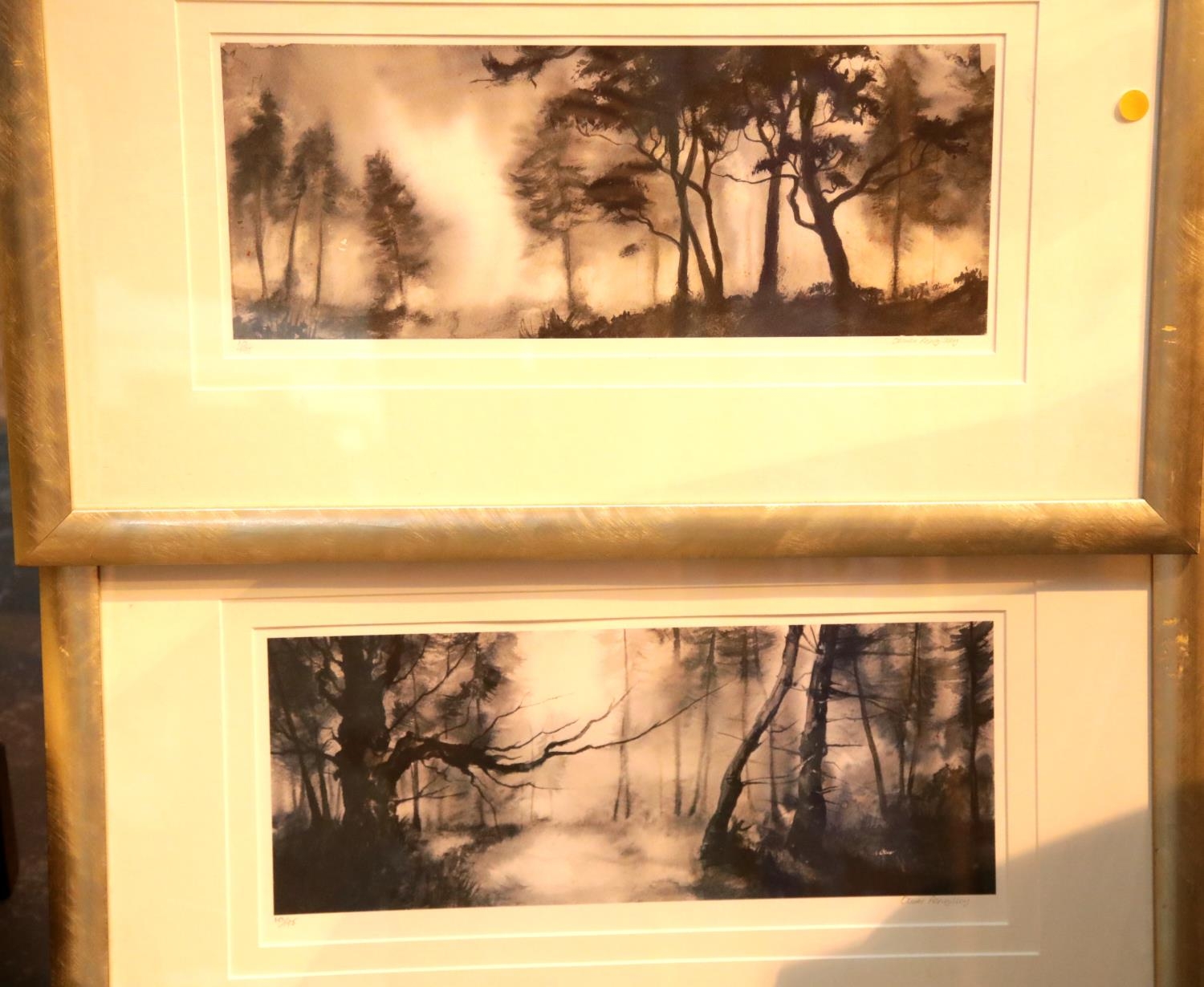 Pair of framed and glazed woodland scene prints, 45 x 20 cm. This lot is not available for in-house P&P.