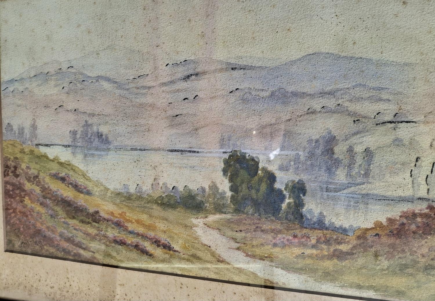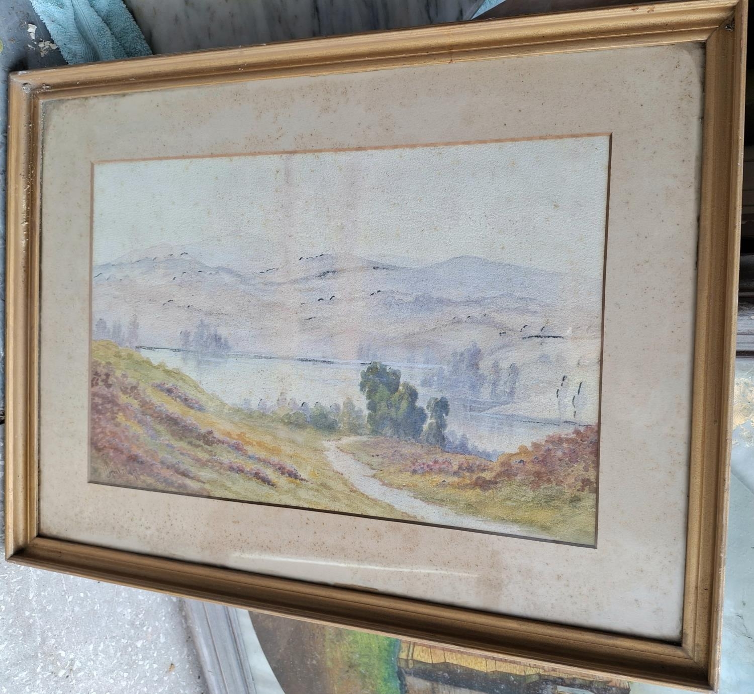 J Moorhouse, early 20thC watercolour "Country Lake scene" in gilt frame
