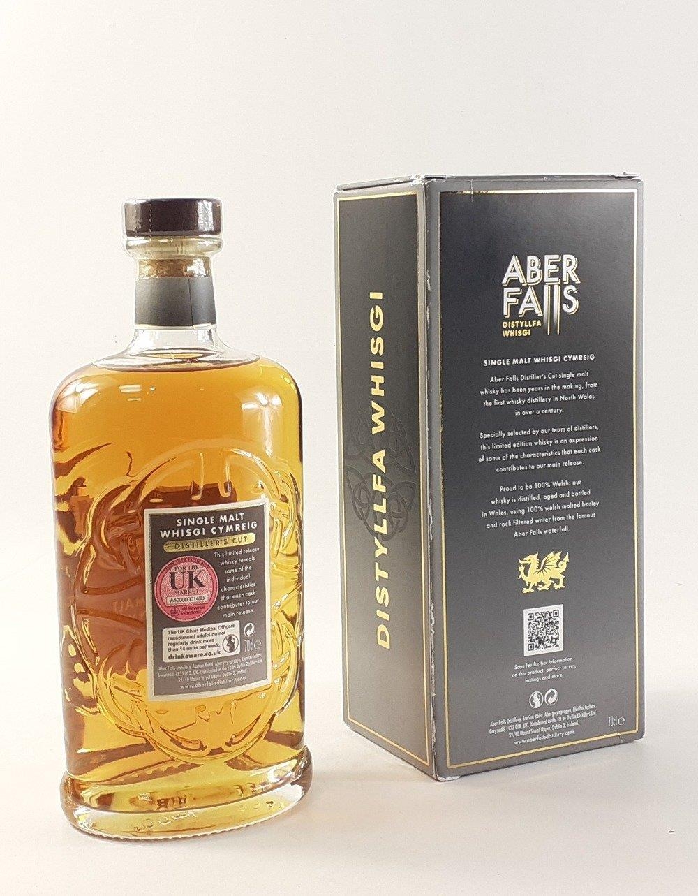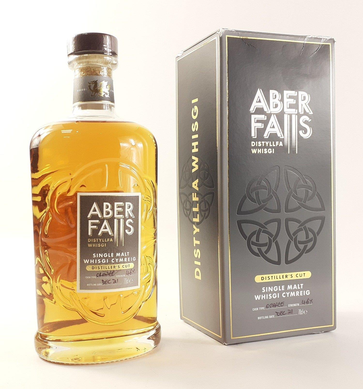 A distiller's cut 70cl. bottle of ABER FALLS single malt whisky Whisgi Cymreig. Cask type Orange, strength 46%, distilled Dec 2021. In box (slight damage to box edges)