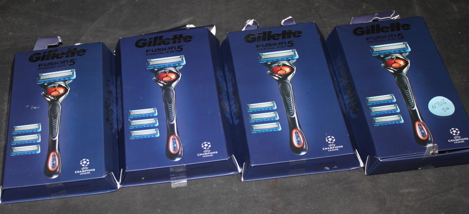 @4 X GILLETTE FUSION 5 PROGLIDE RAZOR & 3 REPLACEMENT BLADES (A47)