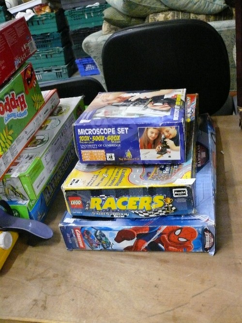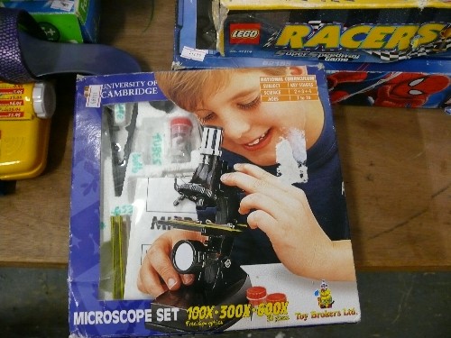 MICROSCOPE SET, LEGO RACERS AND SPIDERMAN RACING SYSTEM