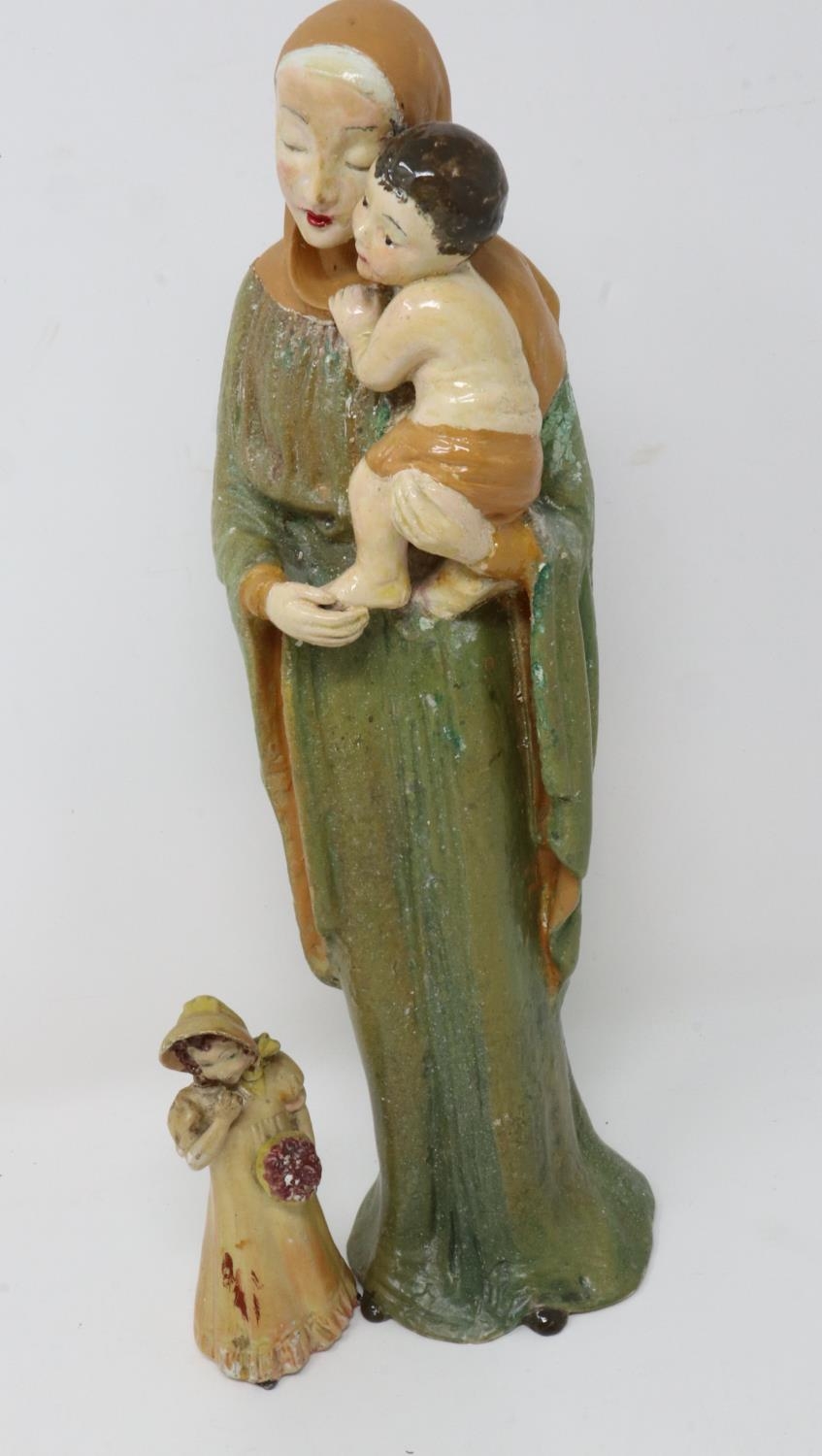 Wade cellulose figurine, Madonna and child, H: 32 cm, and another, all with normal losses associated with these figurines. UK P&P Group 3 (£30+VAT for the first lot and £8+VAT for subsequent lots)
