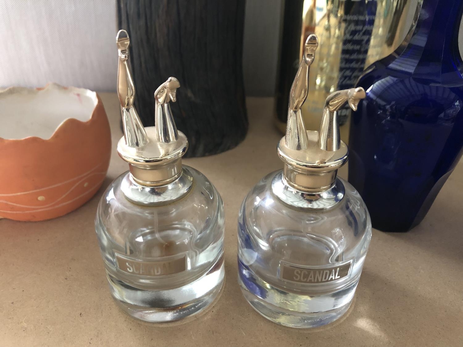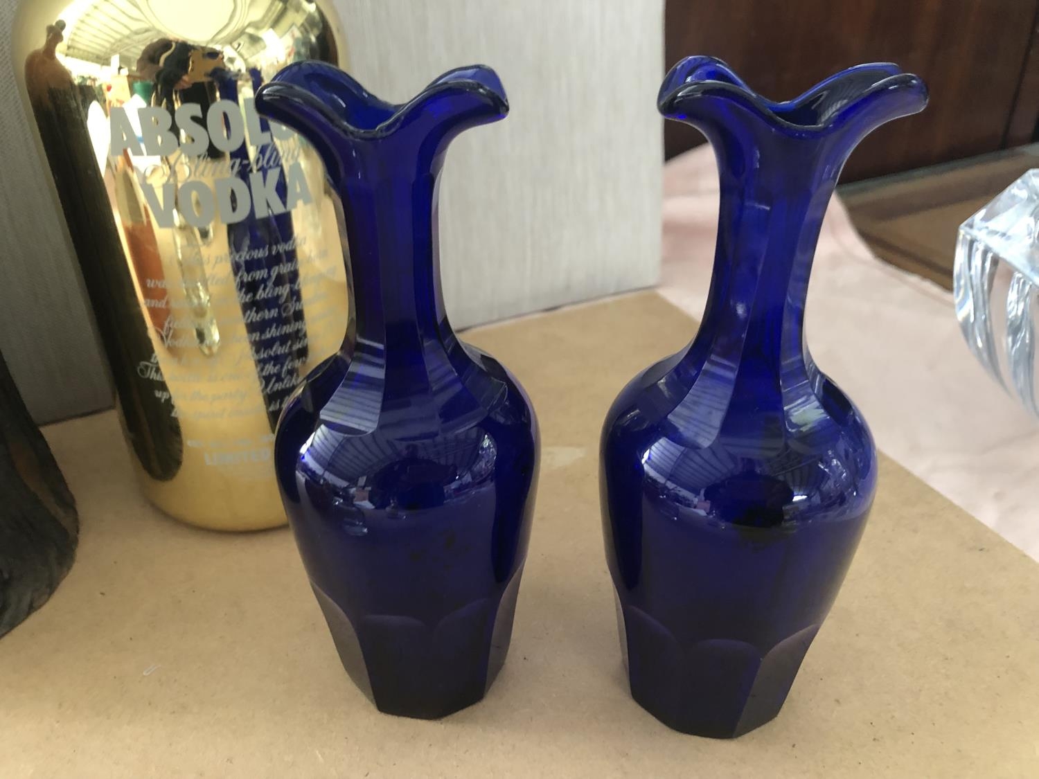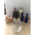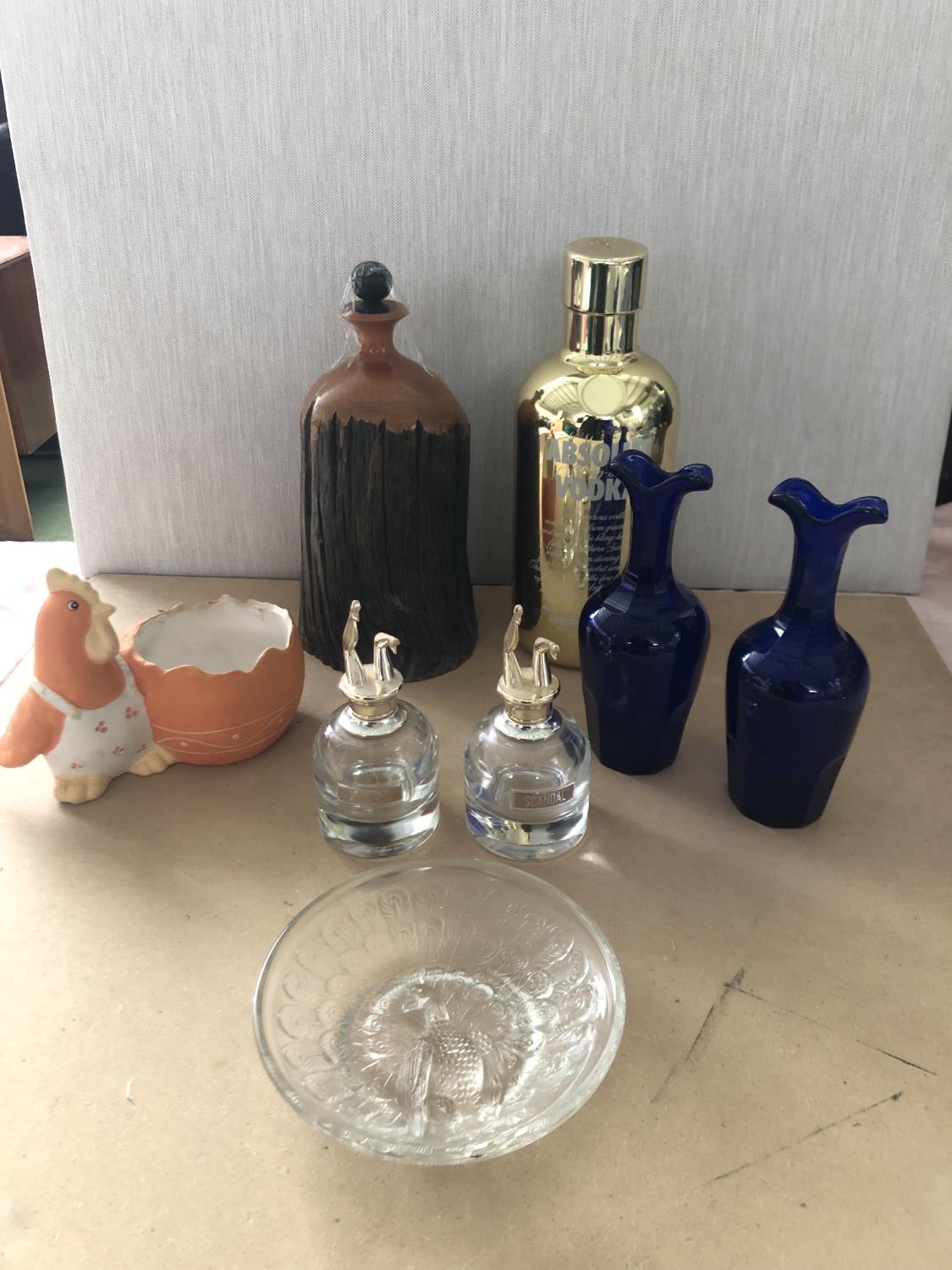 Collectable Bottles, x2 Blue Glass Vases and Other