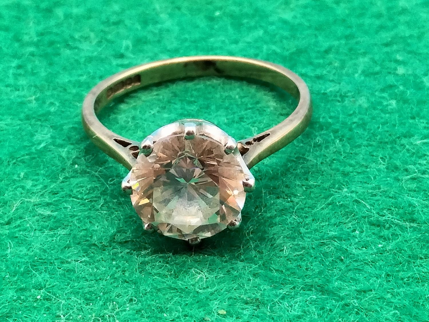 375 9ct Gold Clear Stone Ring. Size Small T Overall Weight 4.4g