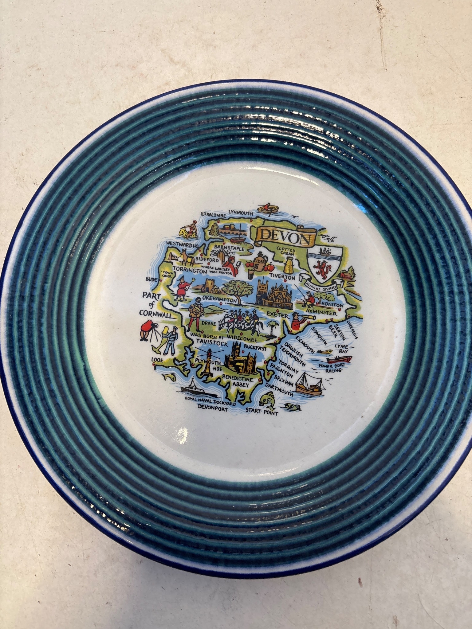 Royal Pottery Saturn Devon map plate with border.