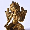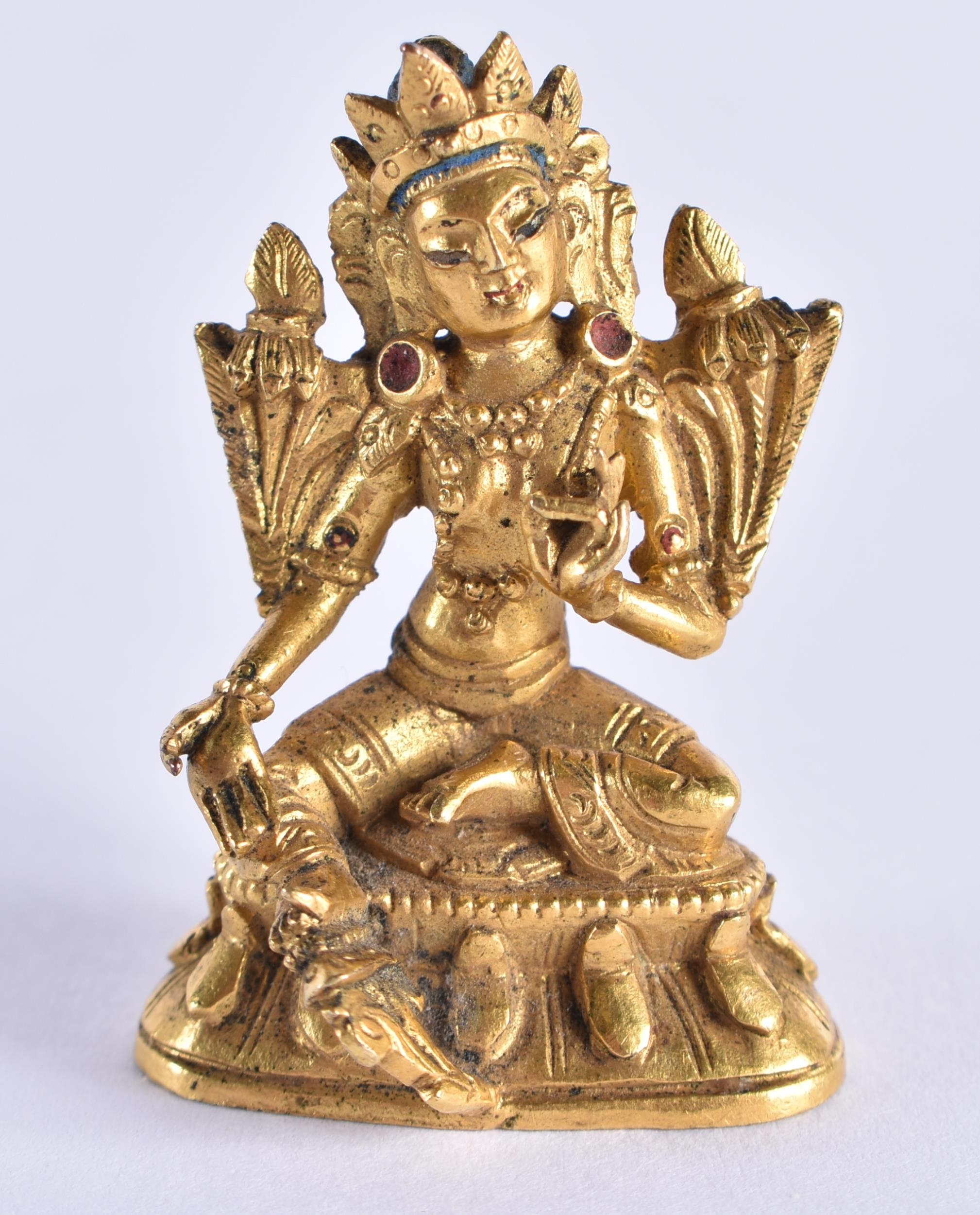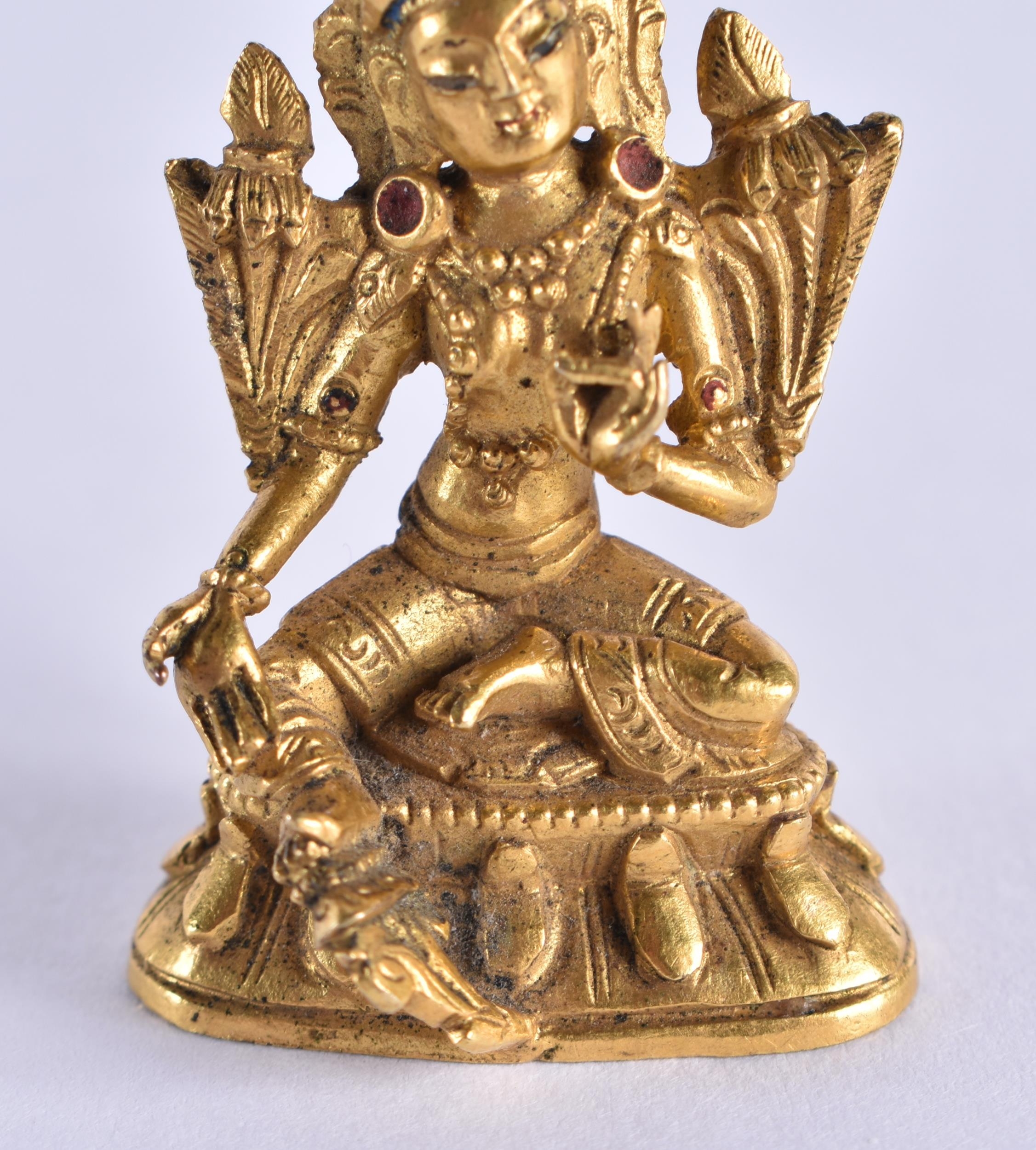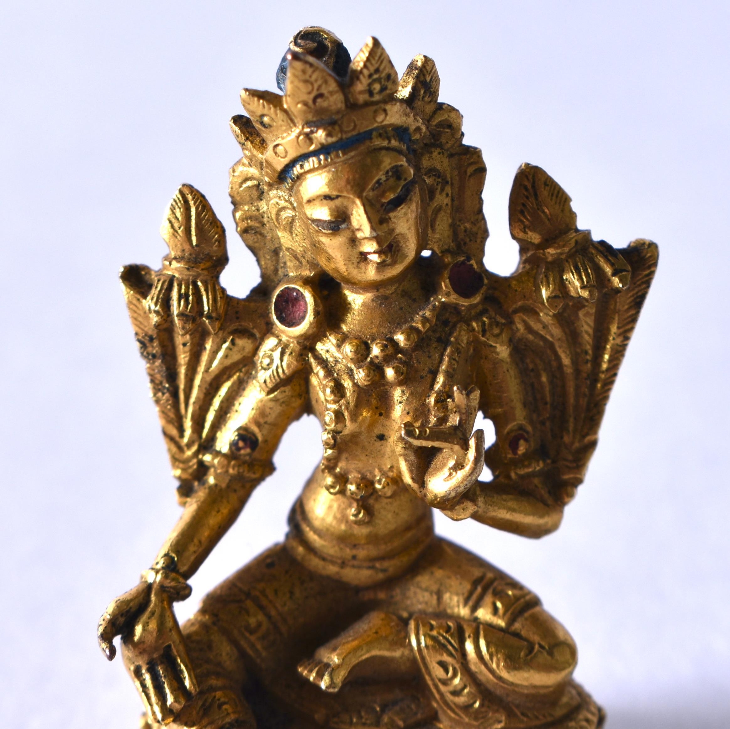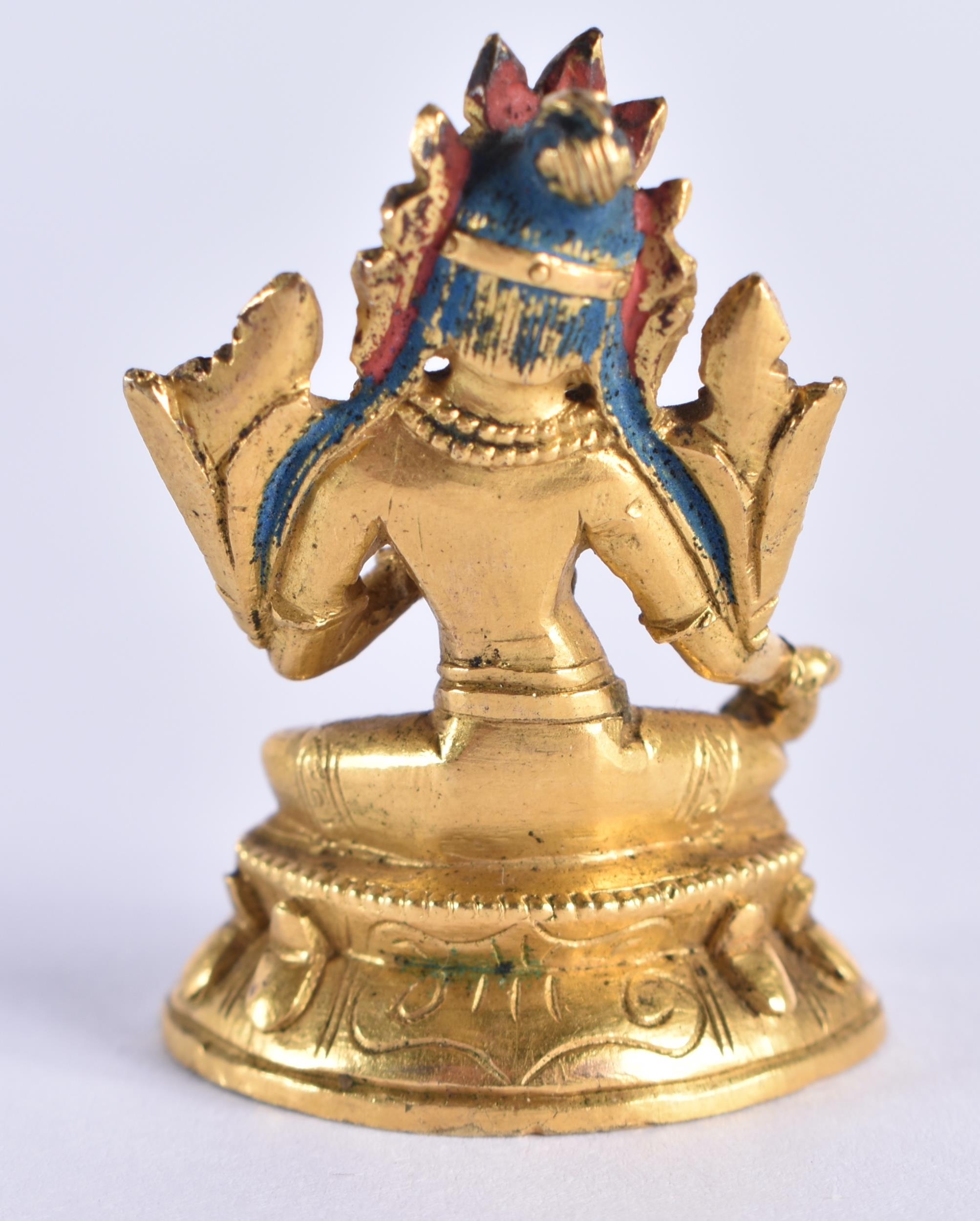 A VERY RARE MINIATURE 18TH CENTURY CHINESE GILT BRONZE FIGURE OF AMITAYUS Qianlong. 3.5 cm x 2.5 cm.