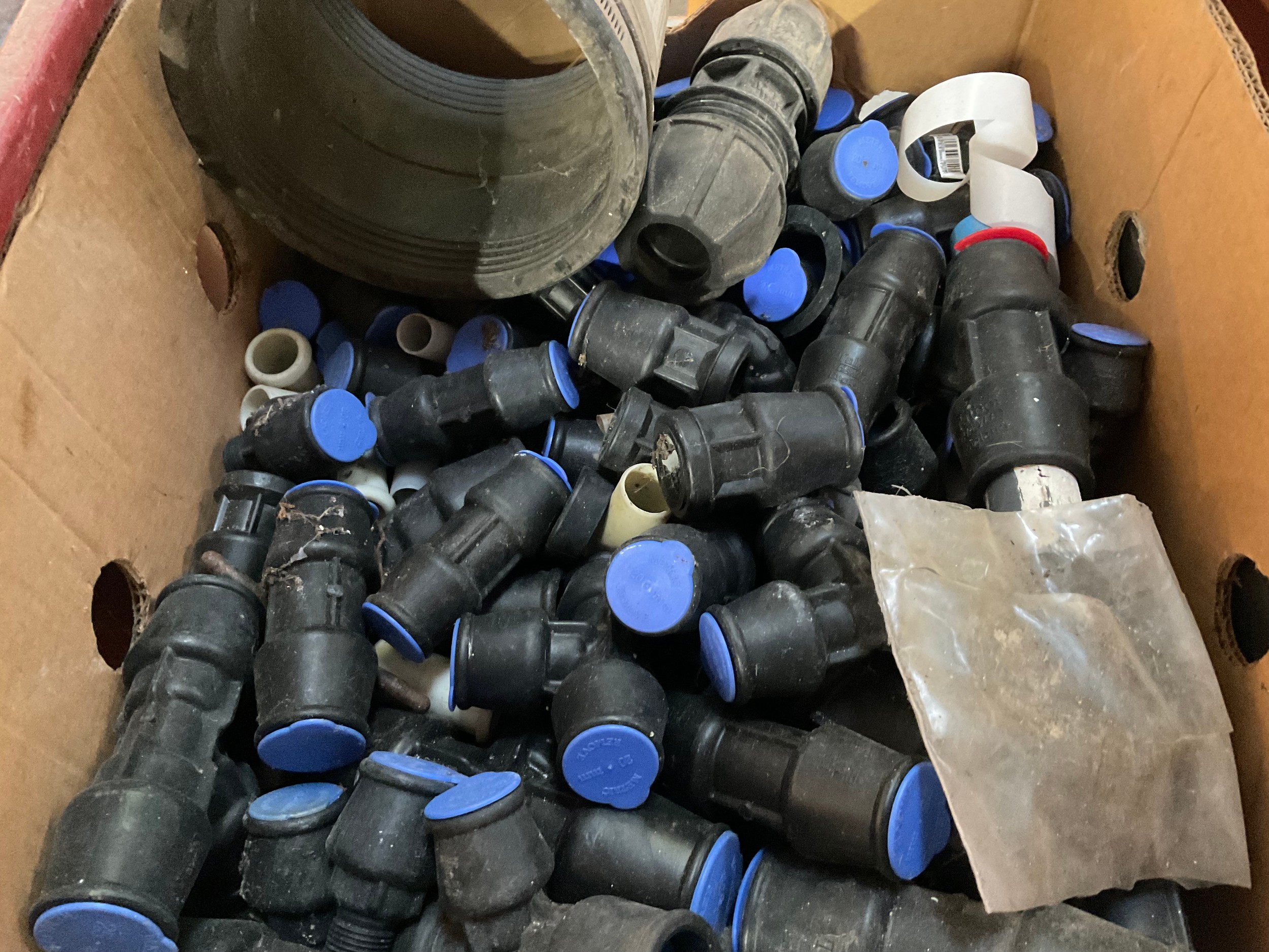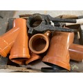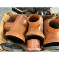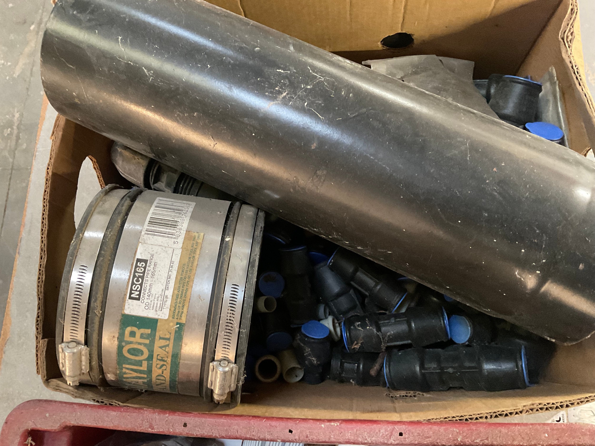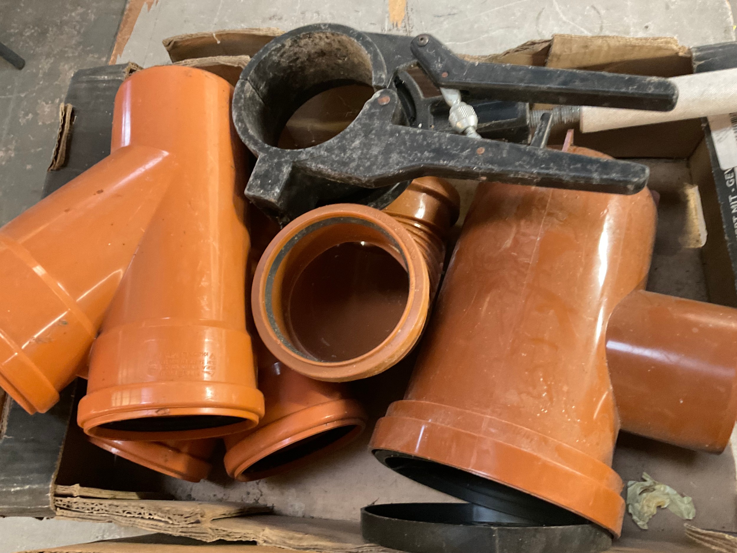 5 BOXES AND PLASTIC CRATE OF DRAINAGE CONNECTING PIPES