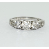9ct gold ladies 3 stone antique set Amethyst ring size Q