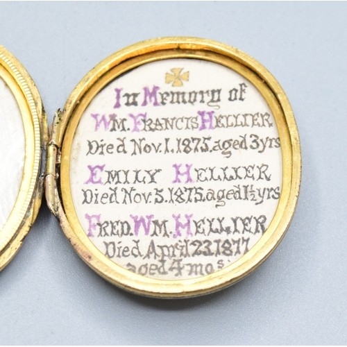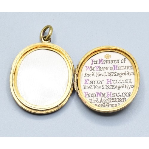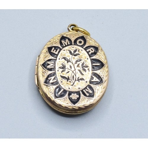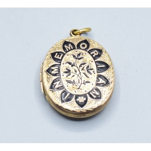 Large antique Victorian Enamelled gold back and front in memory memorial locket, Dedicated inside to lost ones, measuring in side not including the bale 3.3cms long 2.3cms wide weighing 10.41grams