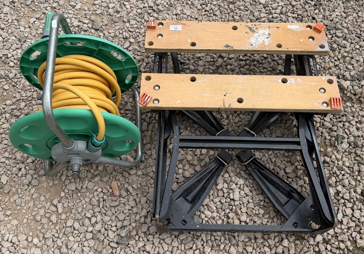 Black & Decker portable folding work bench together with hozelock reel/hose