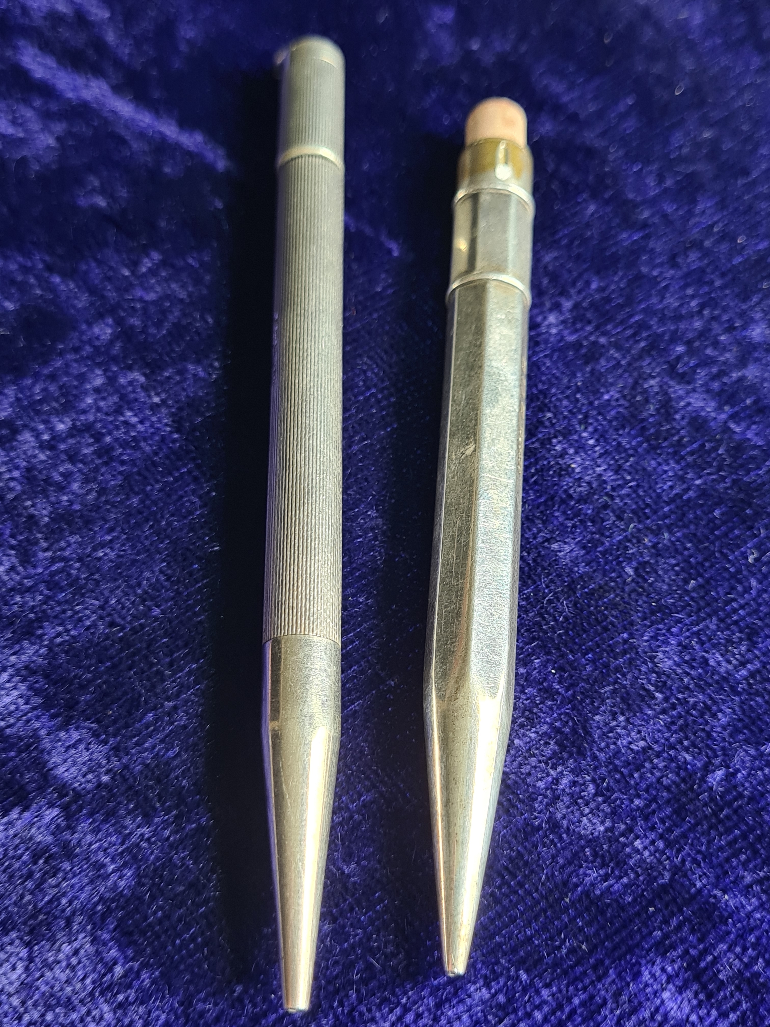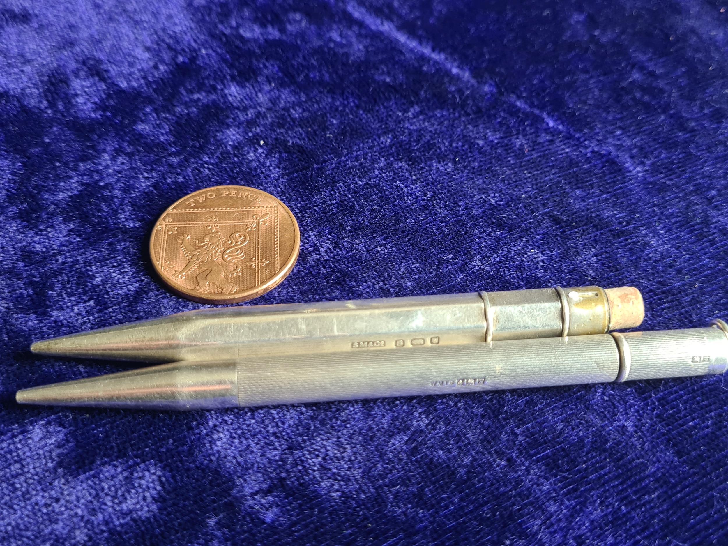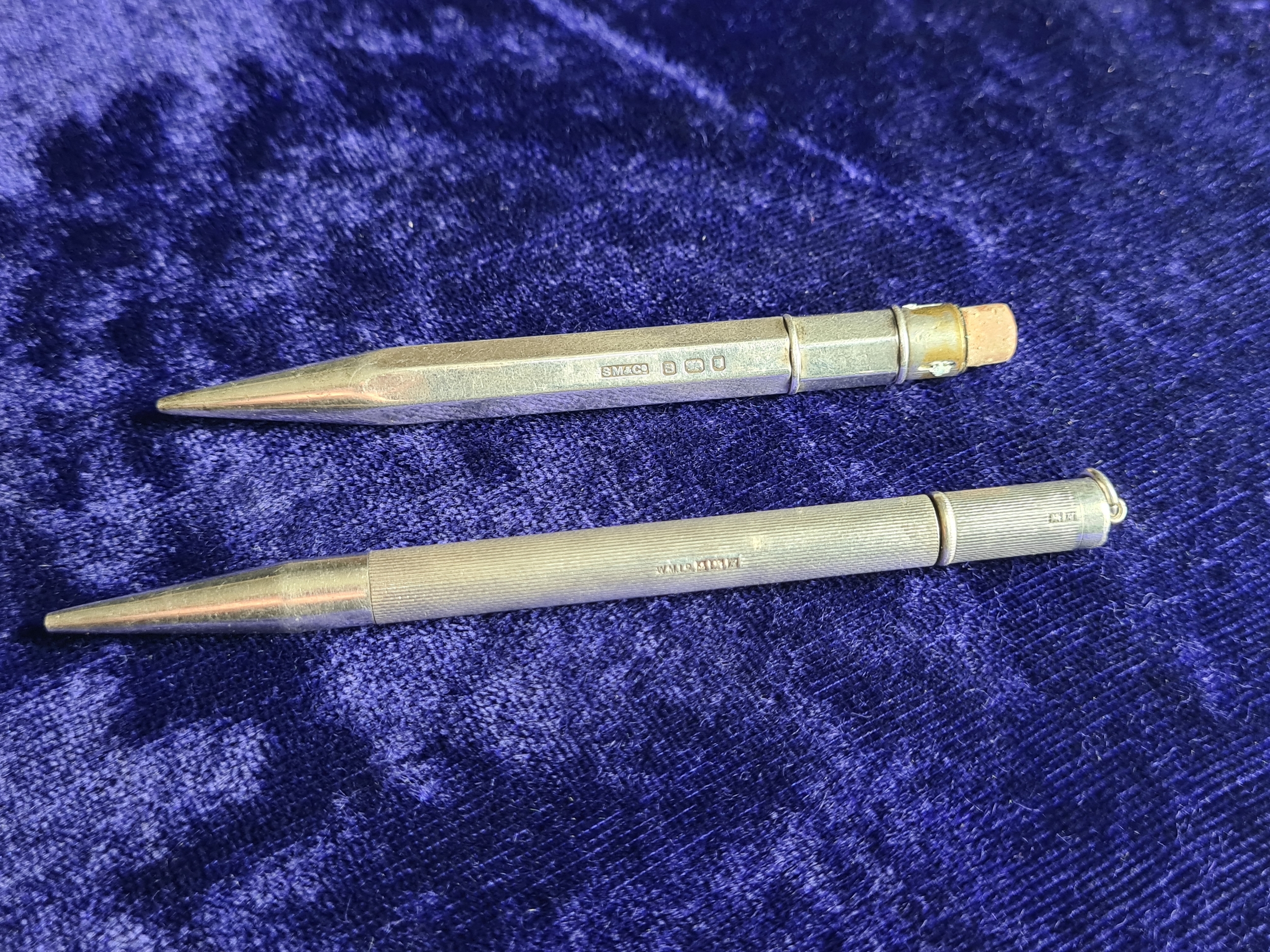 Two vintage Silver automatic propelling pencils for restoration, both hallmarked.