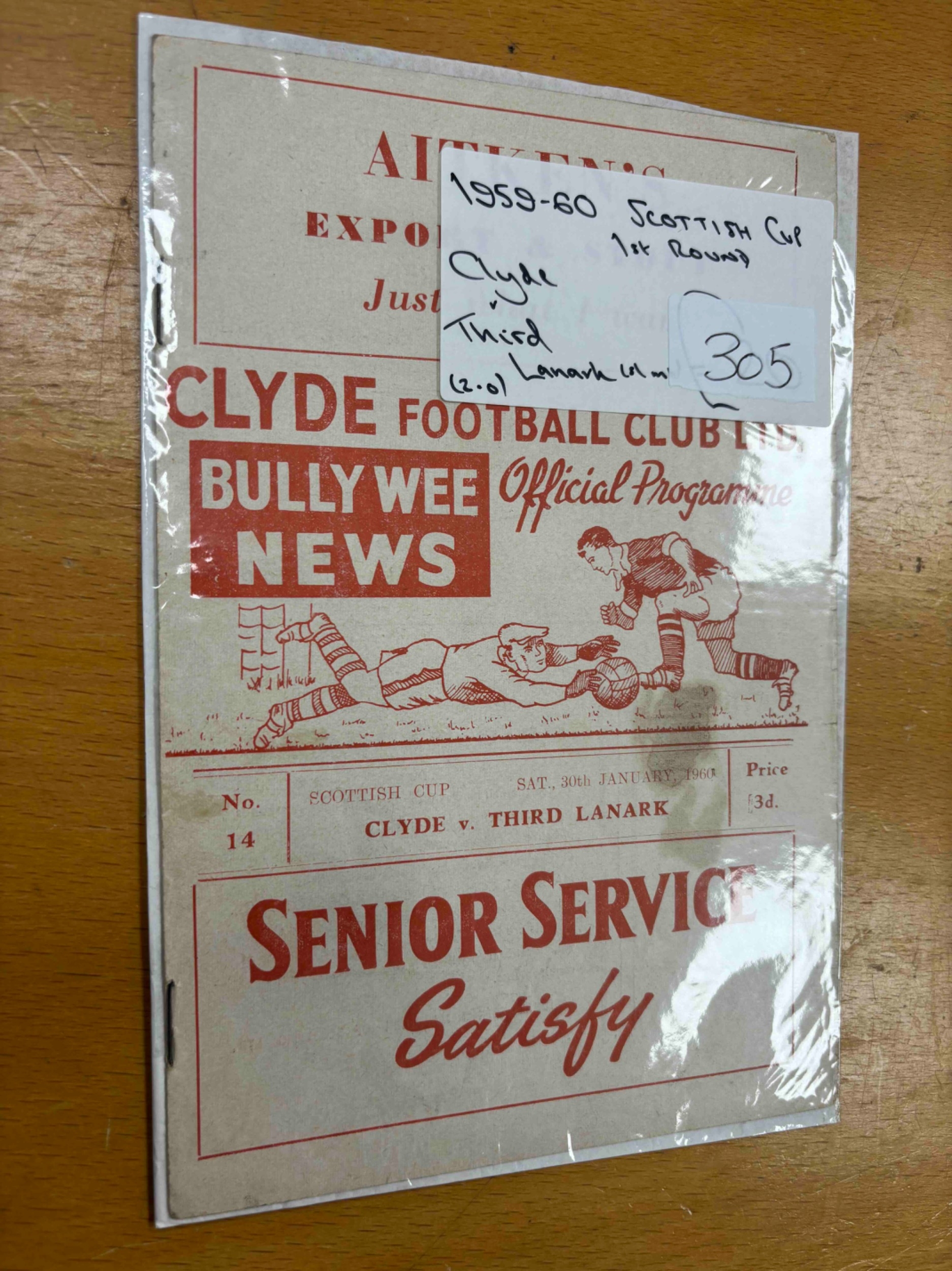 1959/60 Clyde v Third Lanark. Scottish Cup 1st Round. Mark to cover.