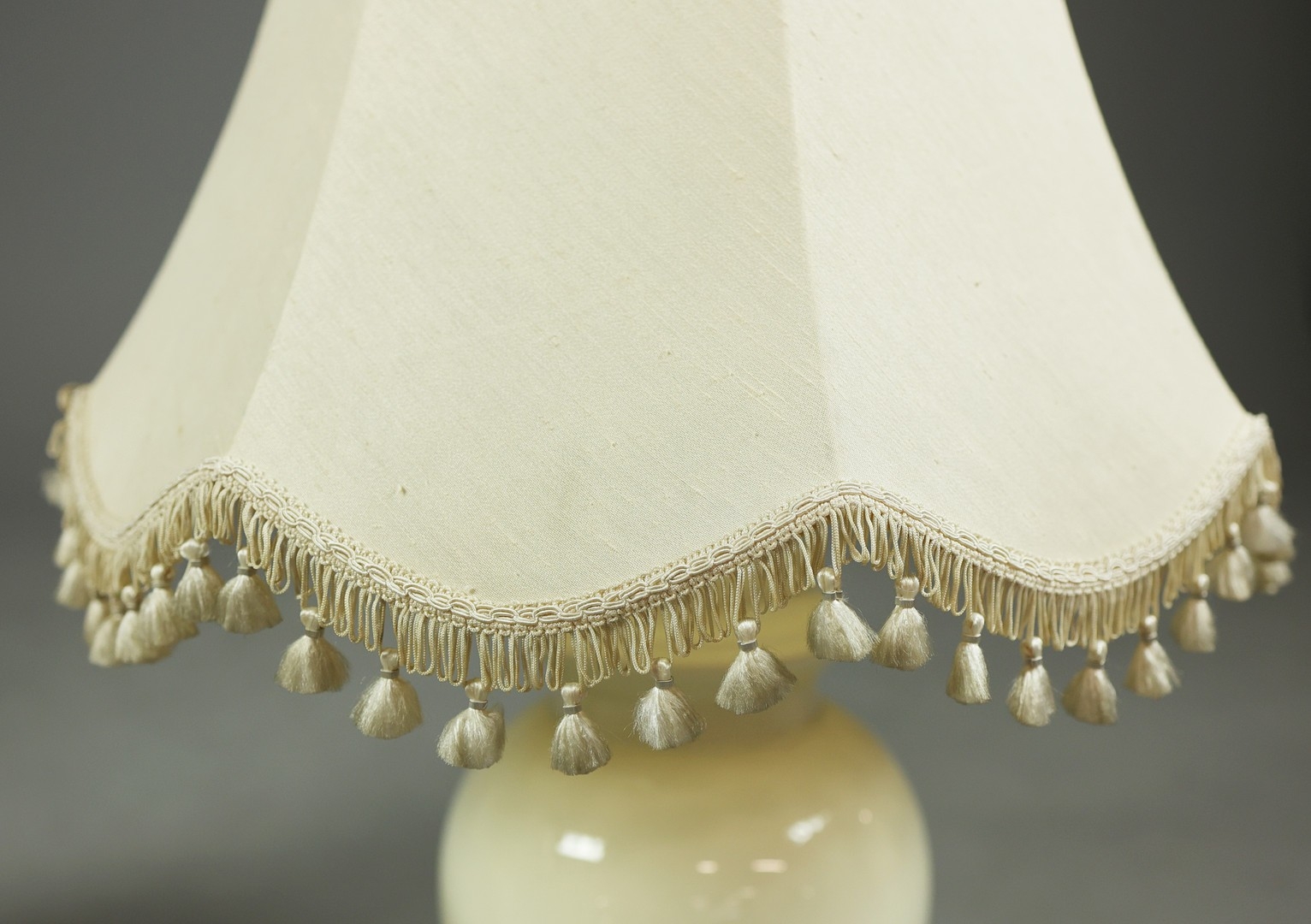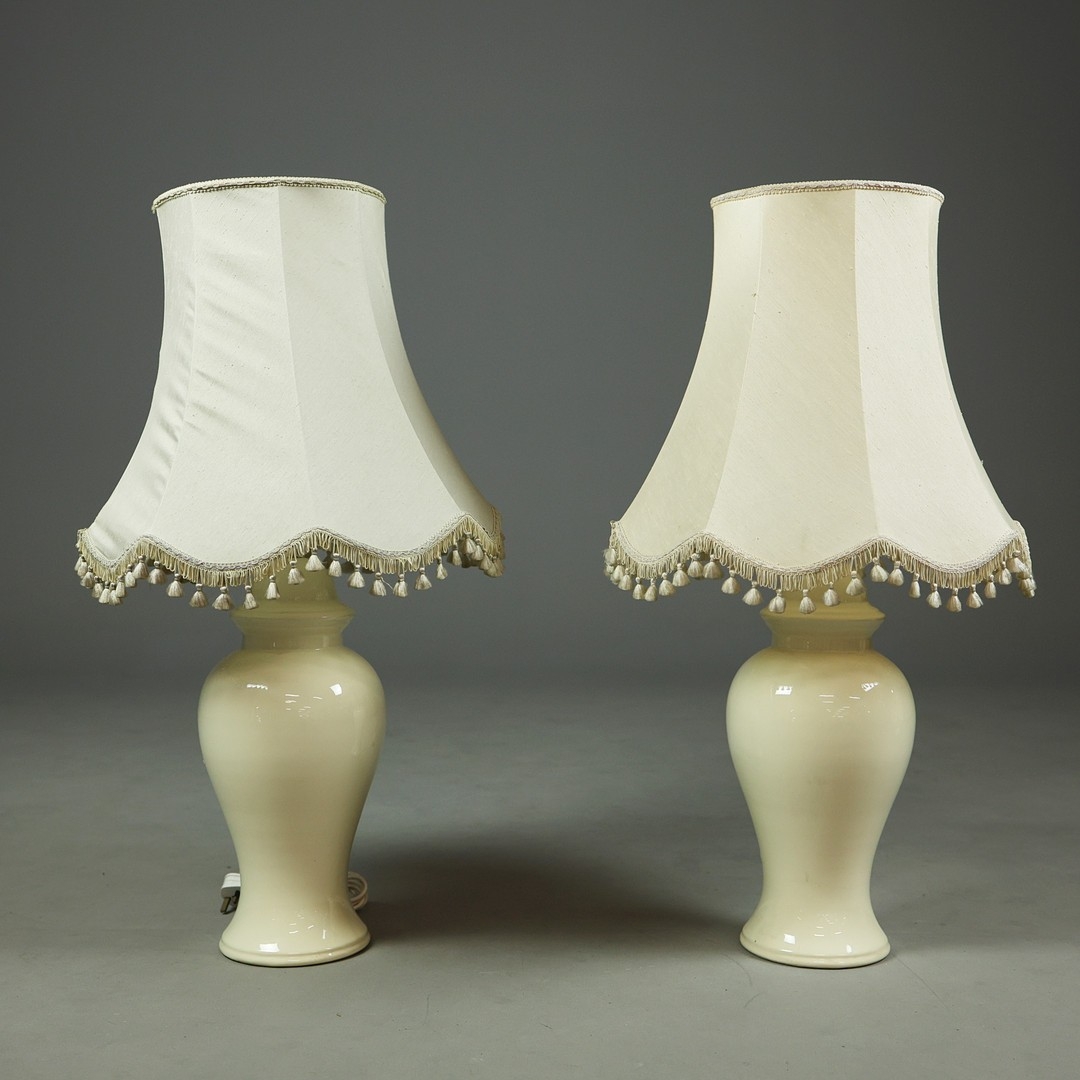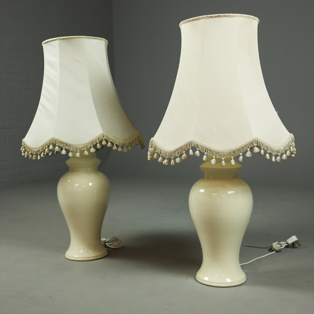 CERAMIC TABLE LAMPS, A PAIR. with shades, 95cm H approx. (2).