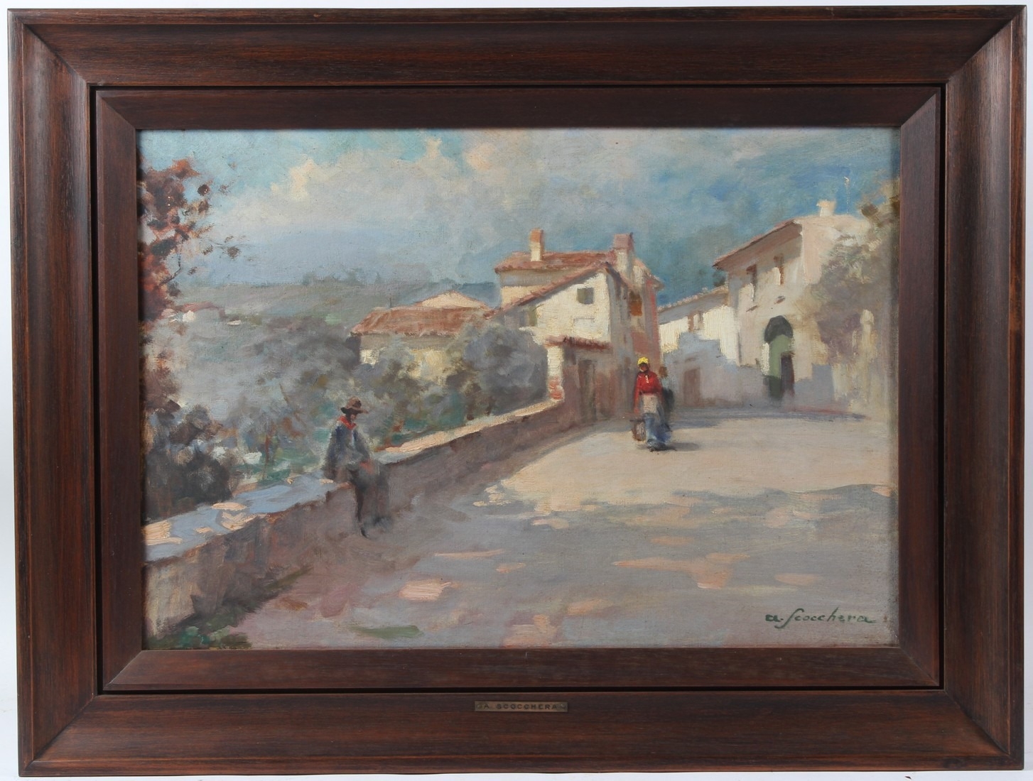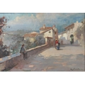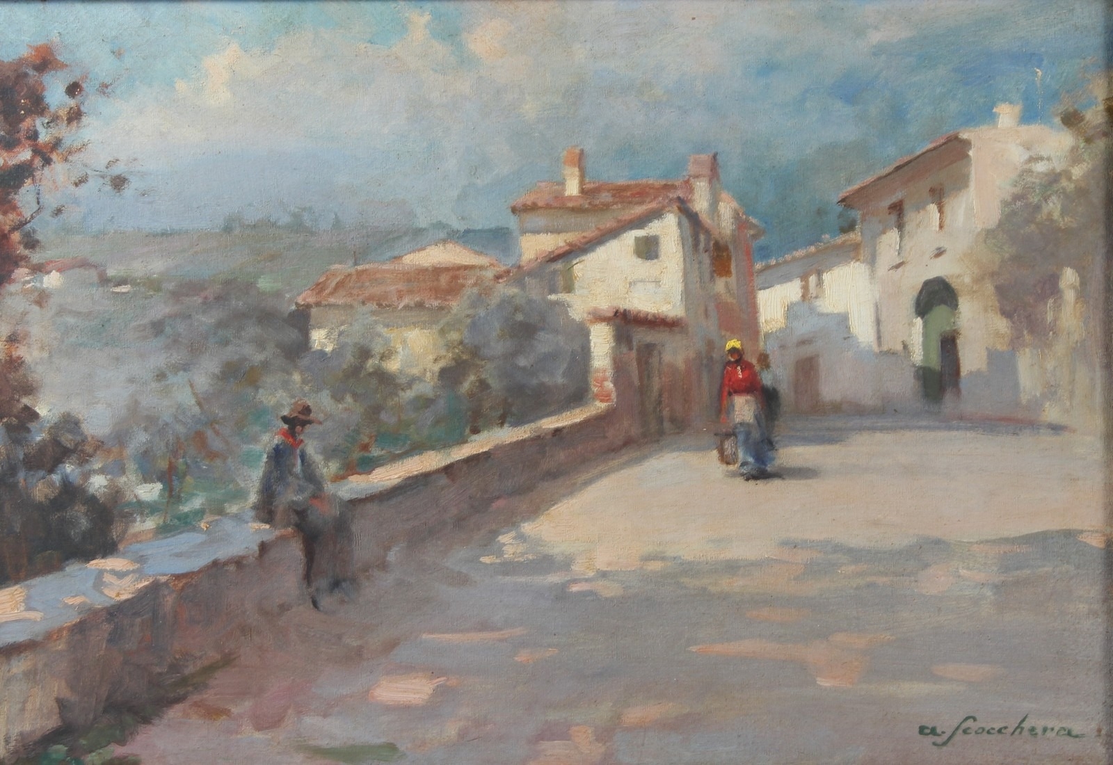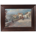 ALFREDO SCOCCHERA (1887-1955) View of Spanish town with figures on a road oil on canvas signed 43 x 63cm