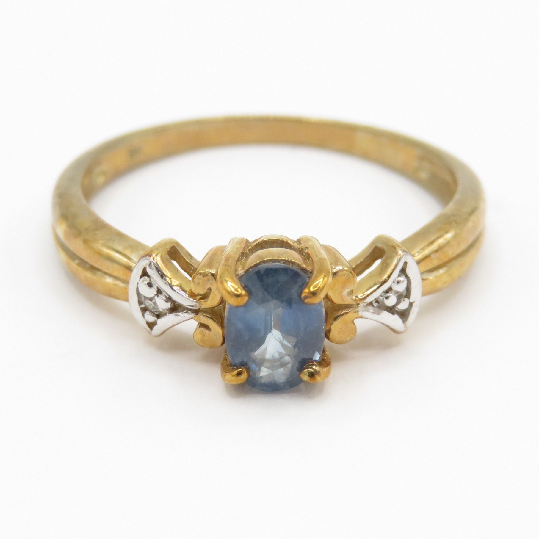 9ct gold sapphire diamond dress ring (2.2g) Size N 1/2