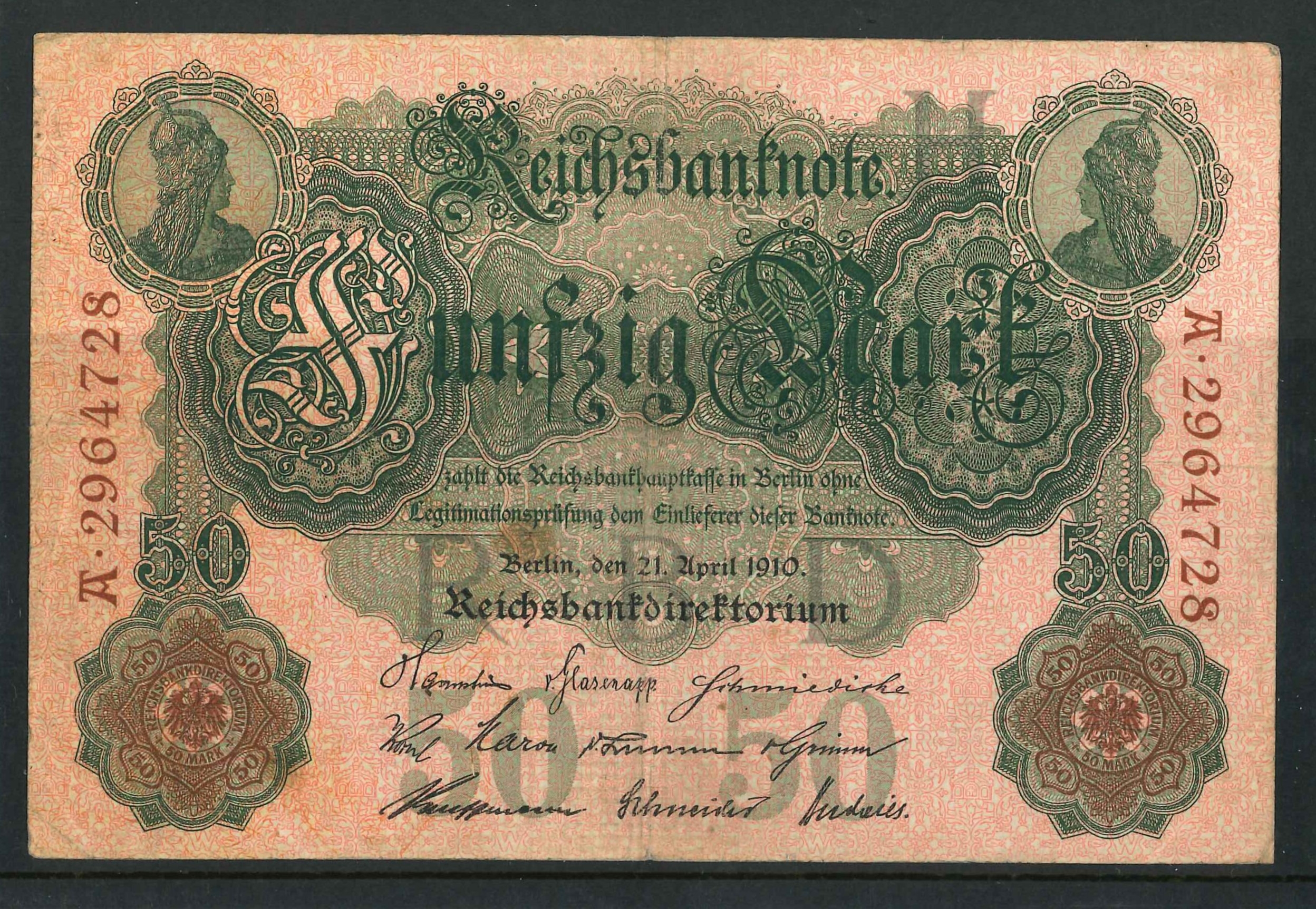 Banknotes; Germany; 1910 50m, F/F+, Krause 41.