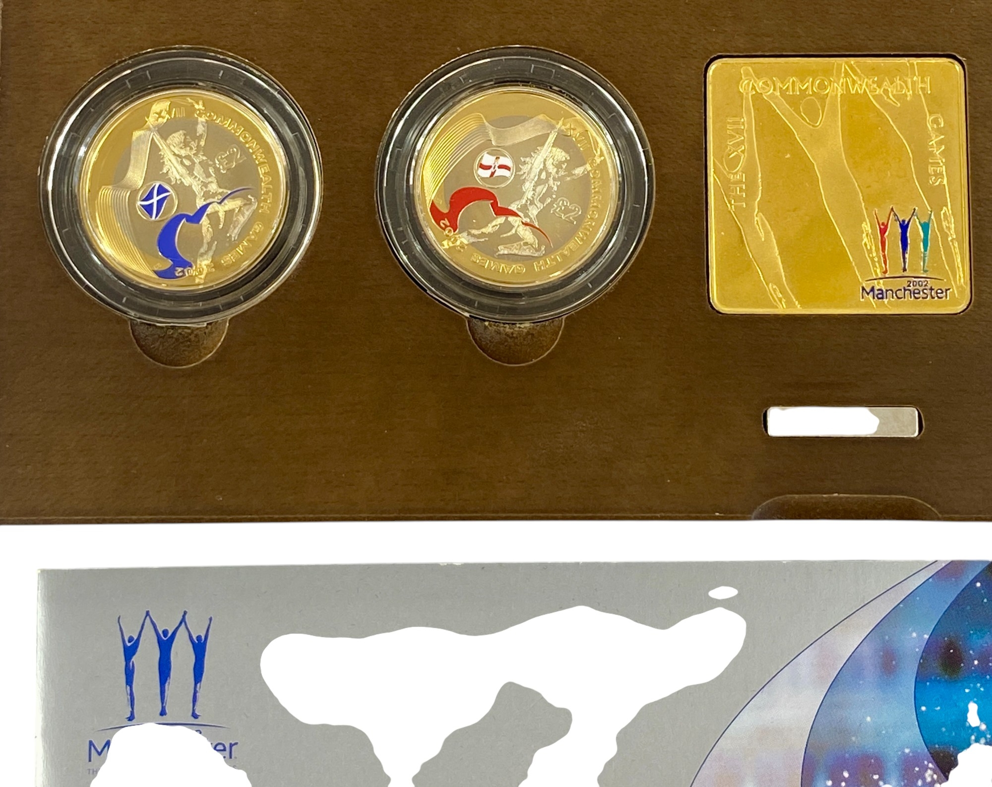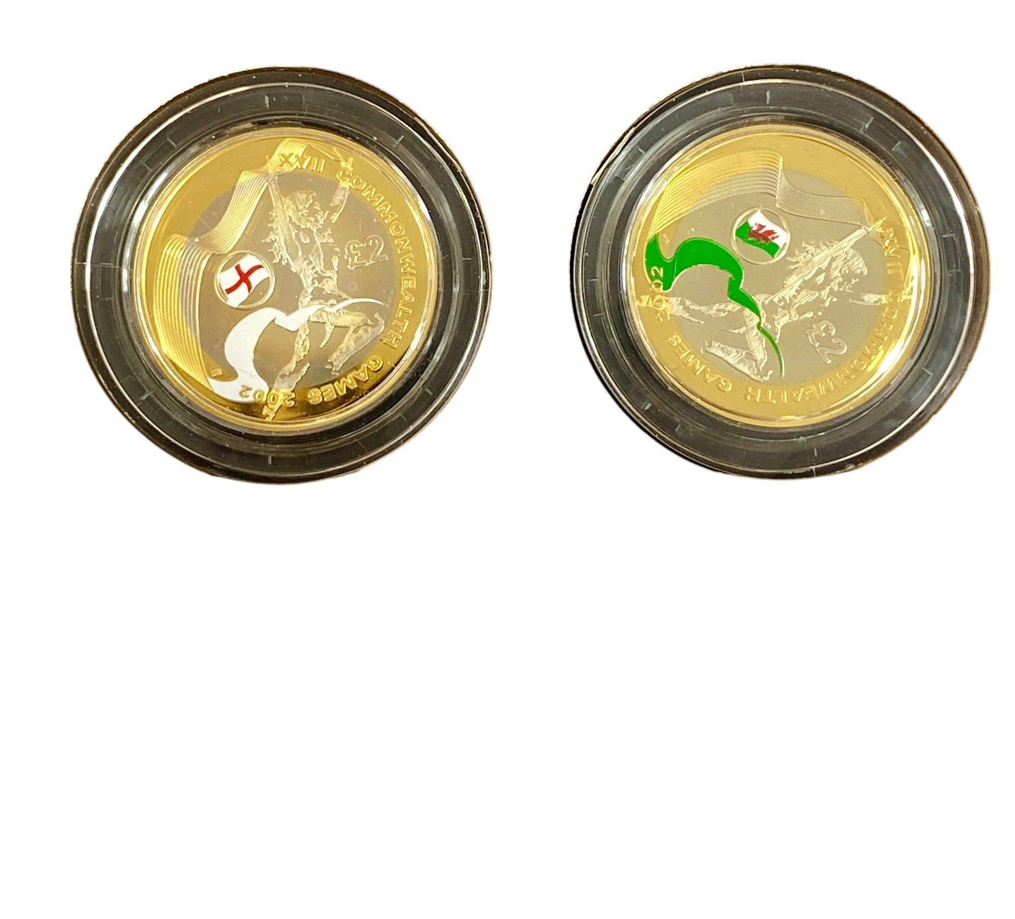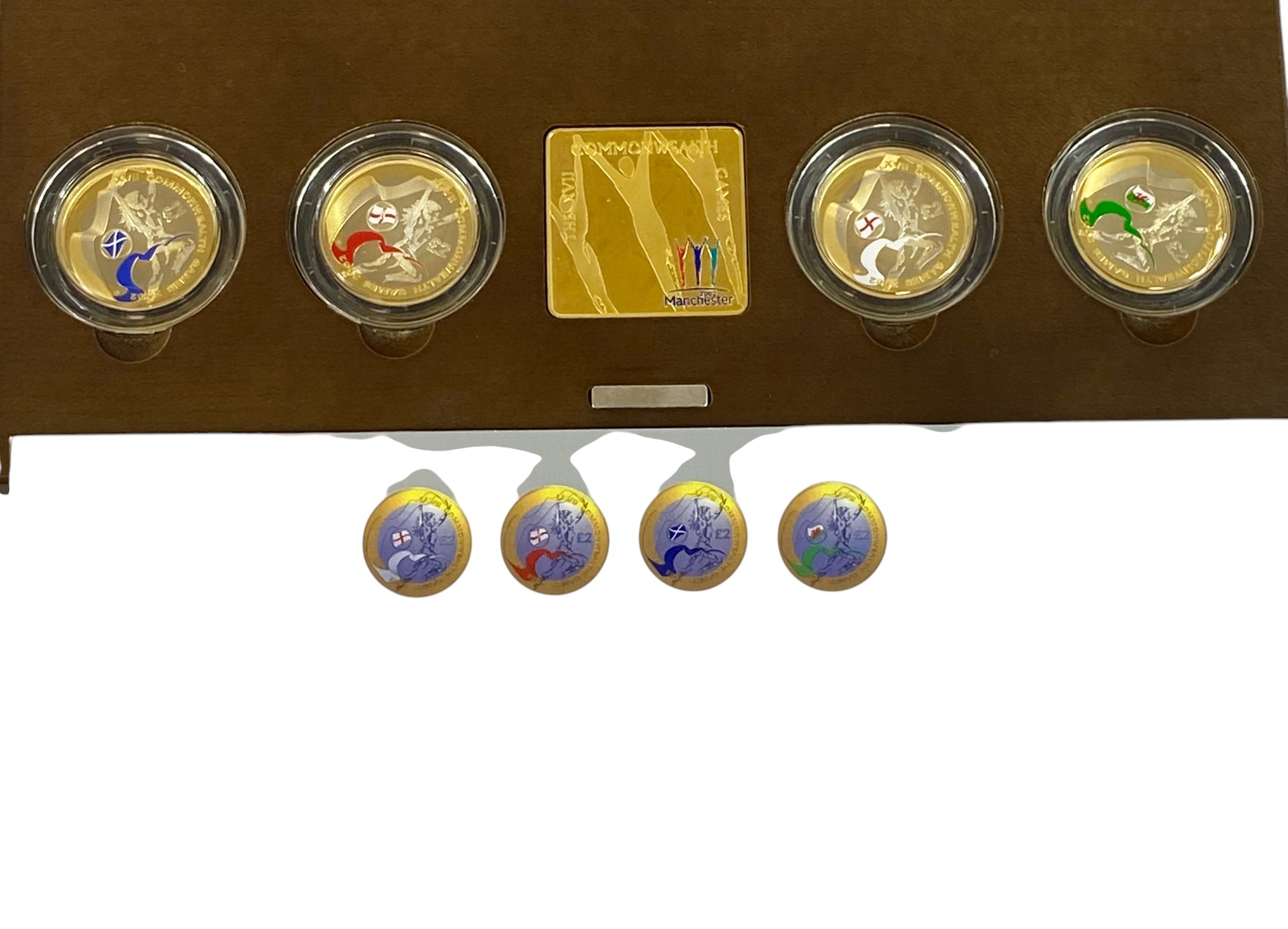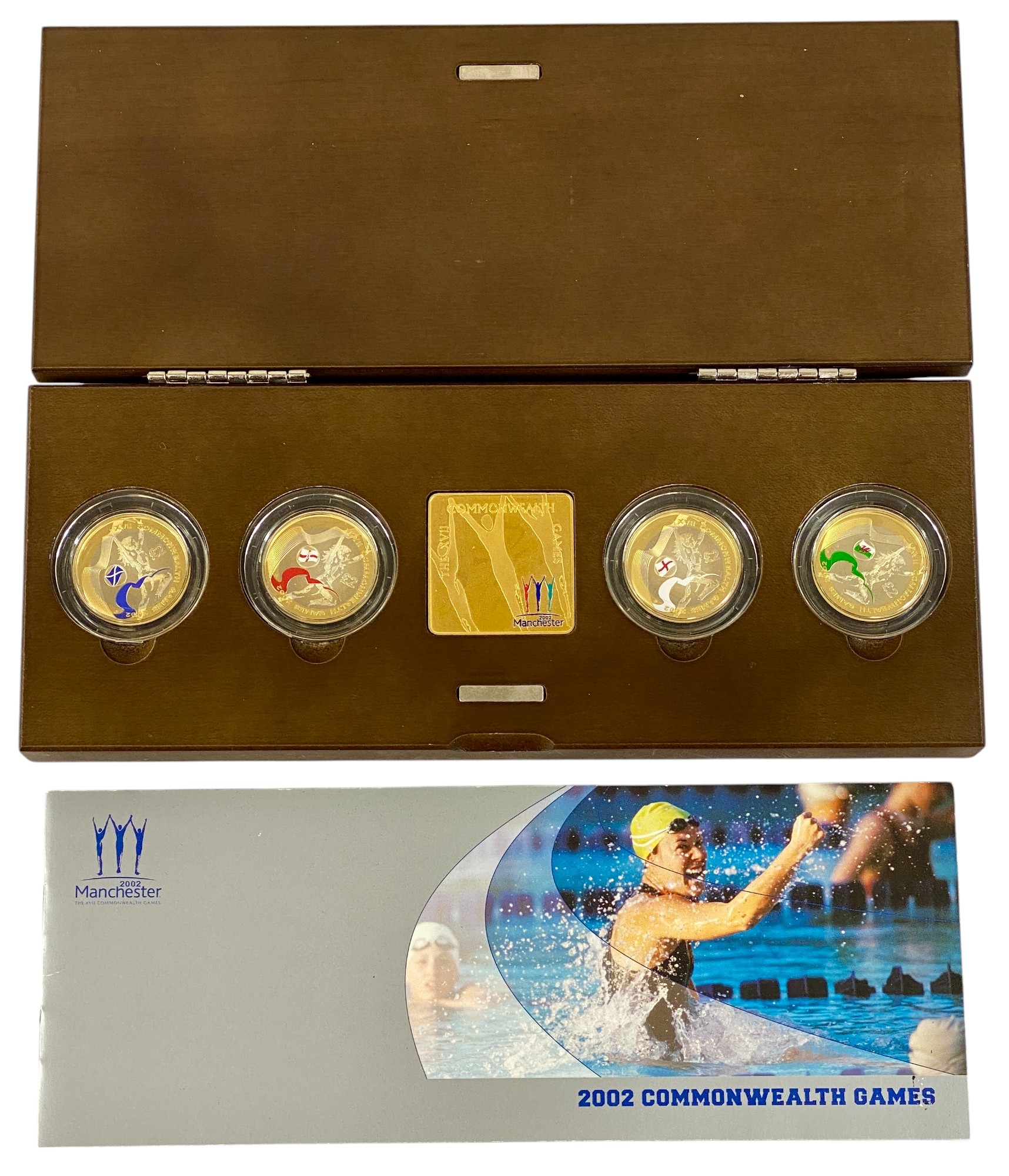 2002 Commonwealth Games 4-Coin Sterling Silver .925, Plated with Fine Gold and coloured.