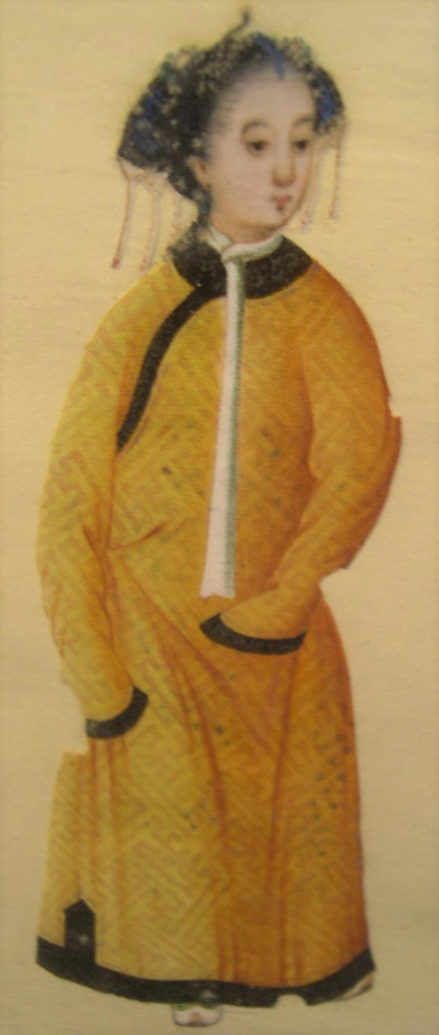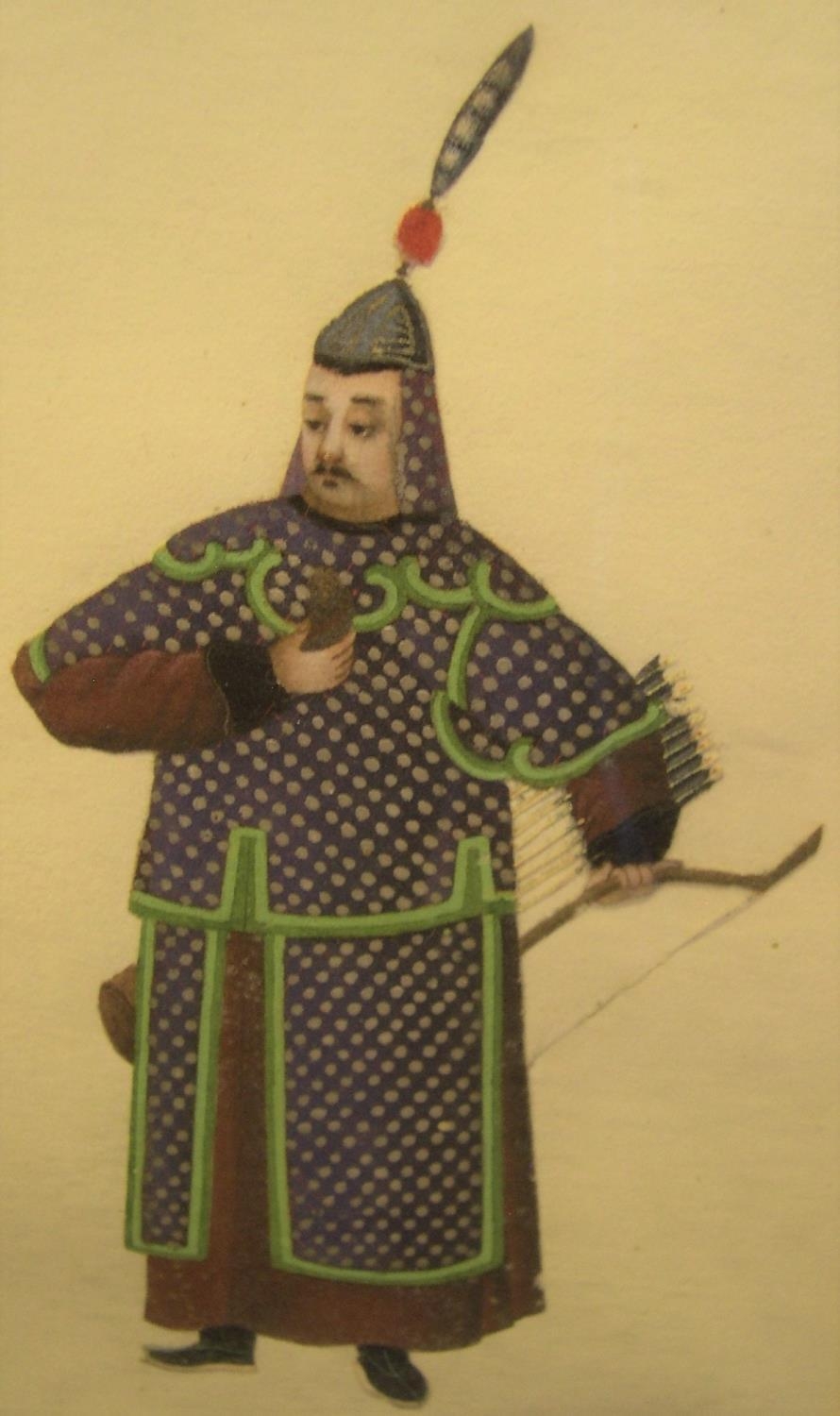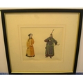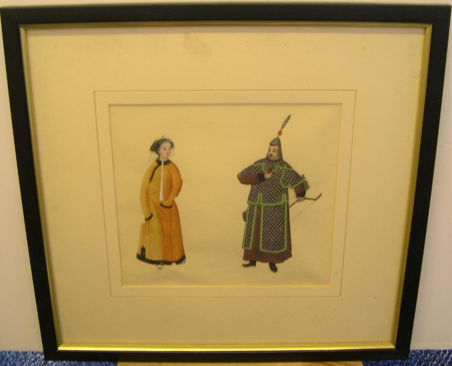 Finely painted double portrait of Chinese watercolour of Chinese lady & archer, unsigned, framed and glazed, circa 1900
