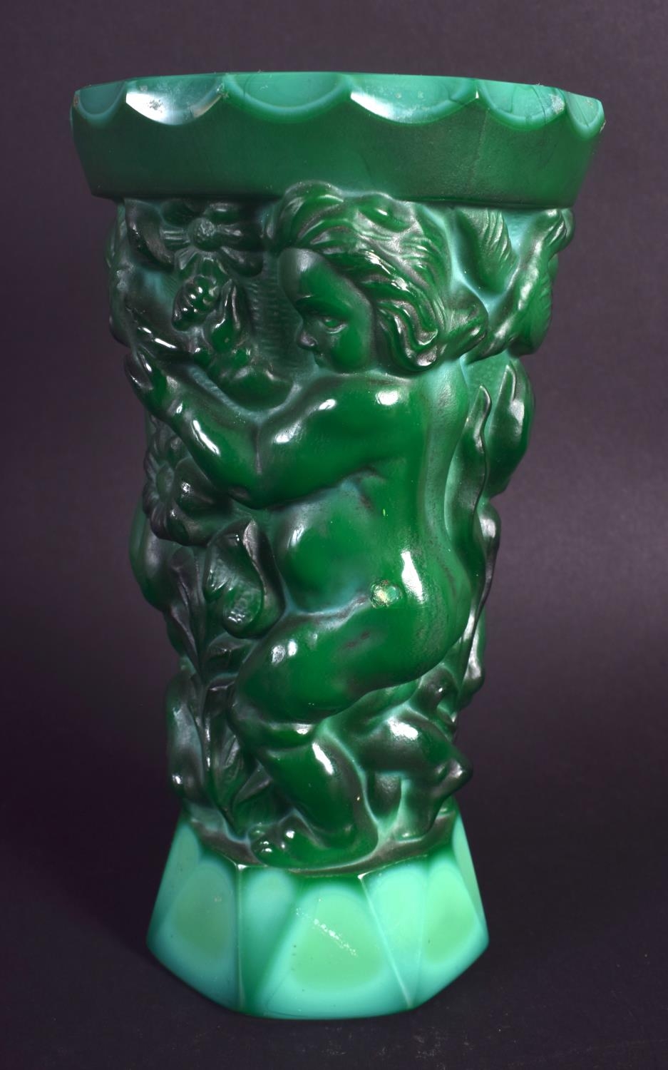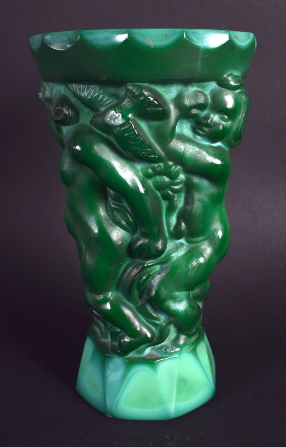 AN ART DECO CONTINENTAL MALACHITE GOBLET VASE decorated with figures. 16 cm high.